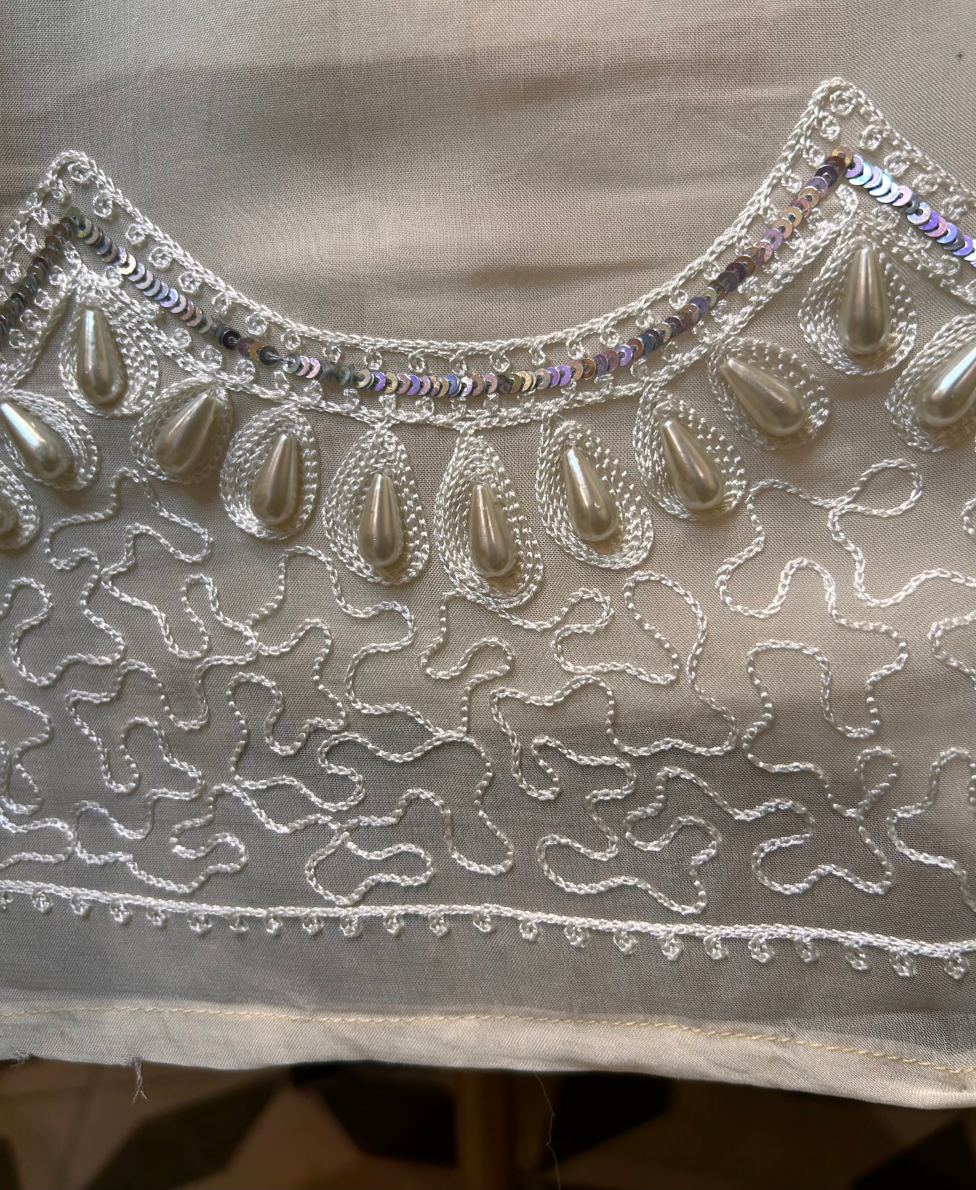 - Organza Hand-Painted & Embroidered Dupatta with Scalloped Edging – An ethereal drape finished with delicate scallops and matching hand embroidery that complements the shirt perfectly.