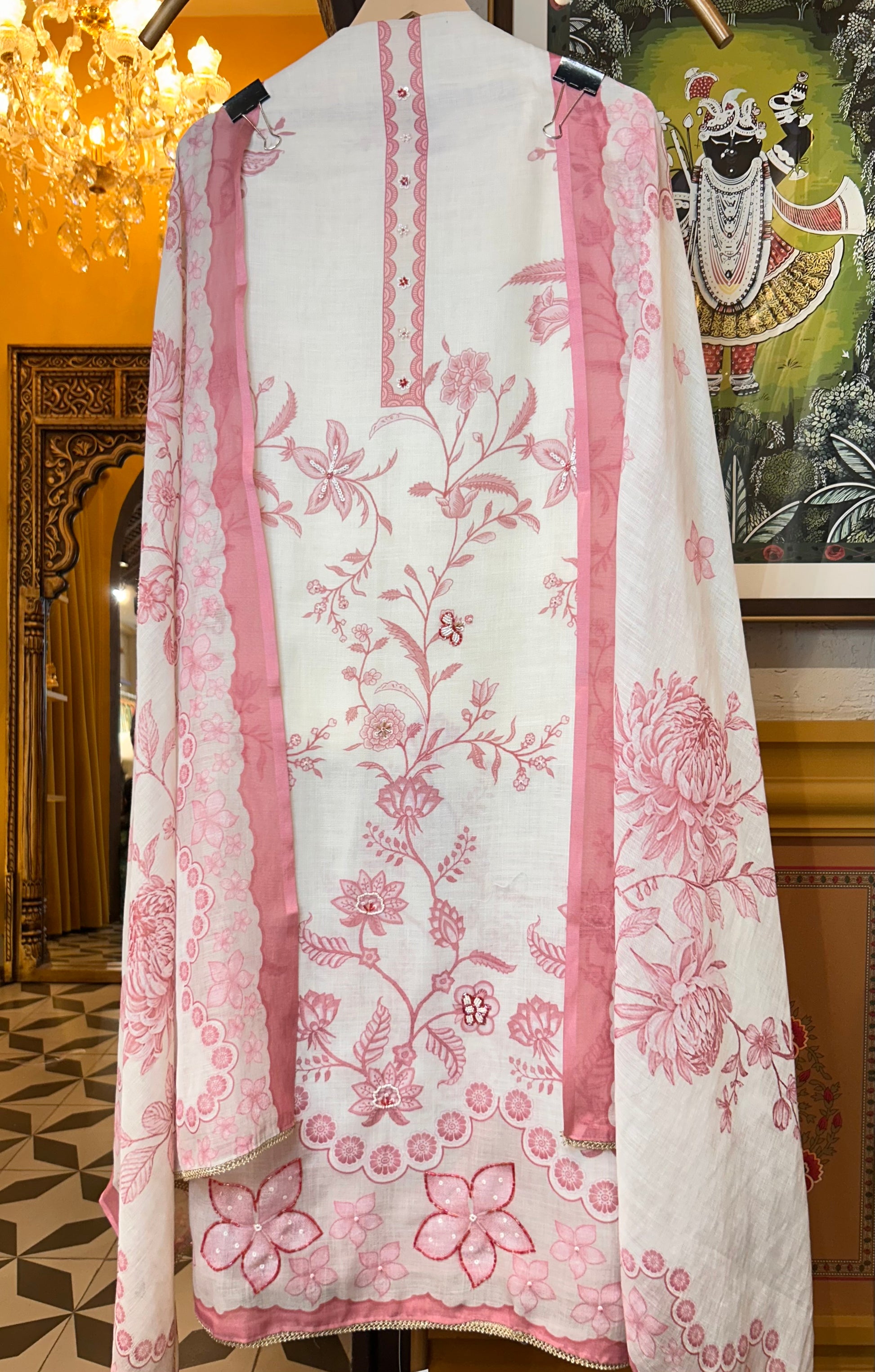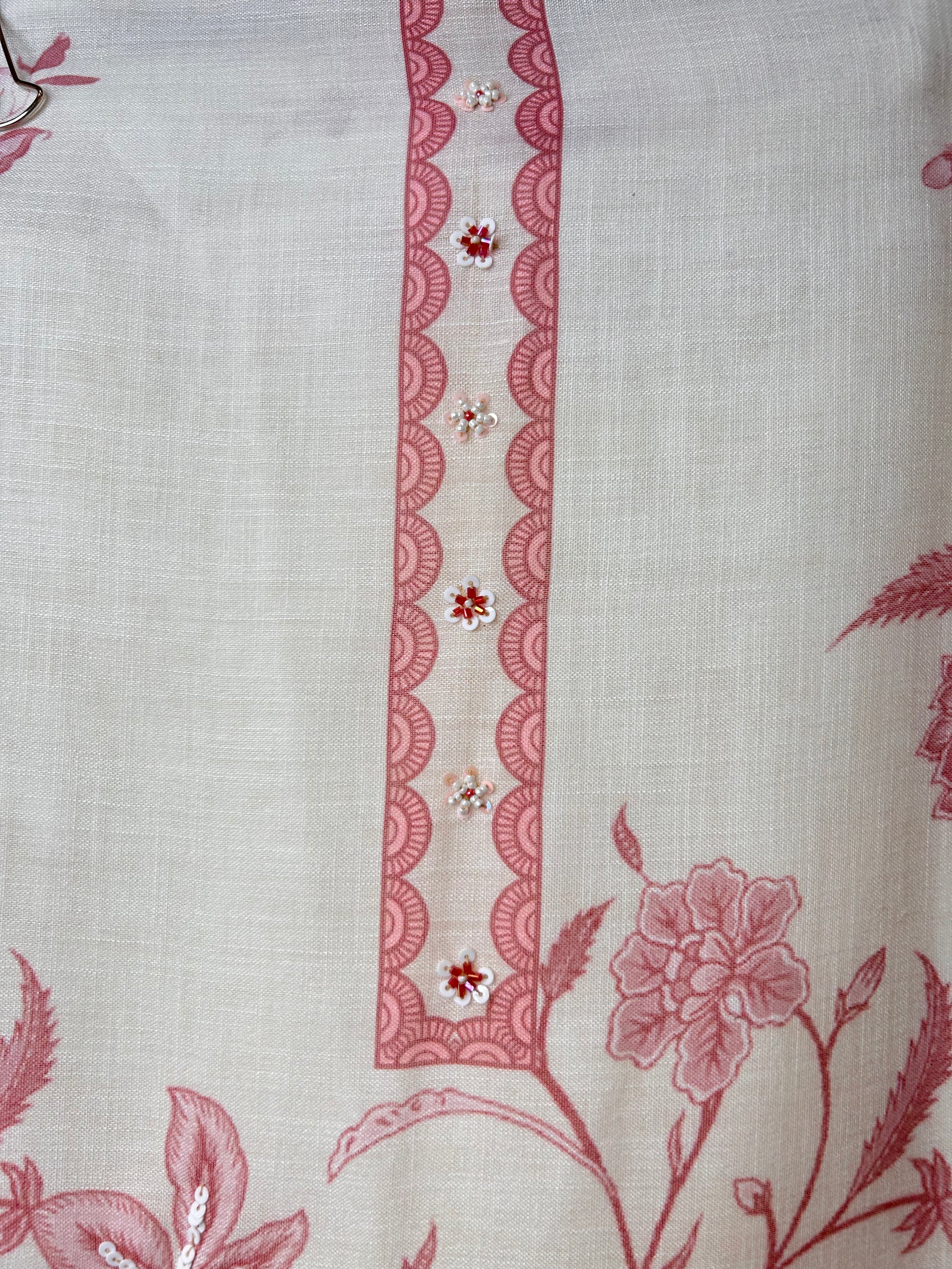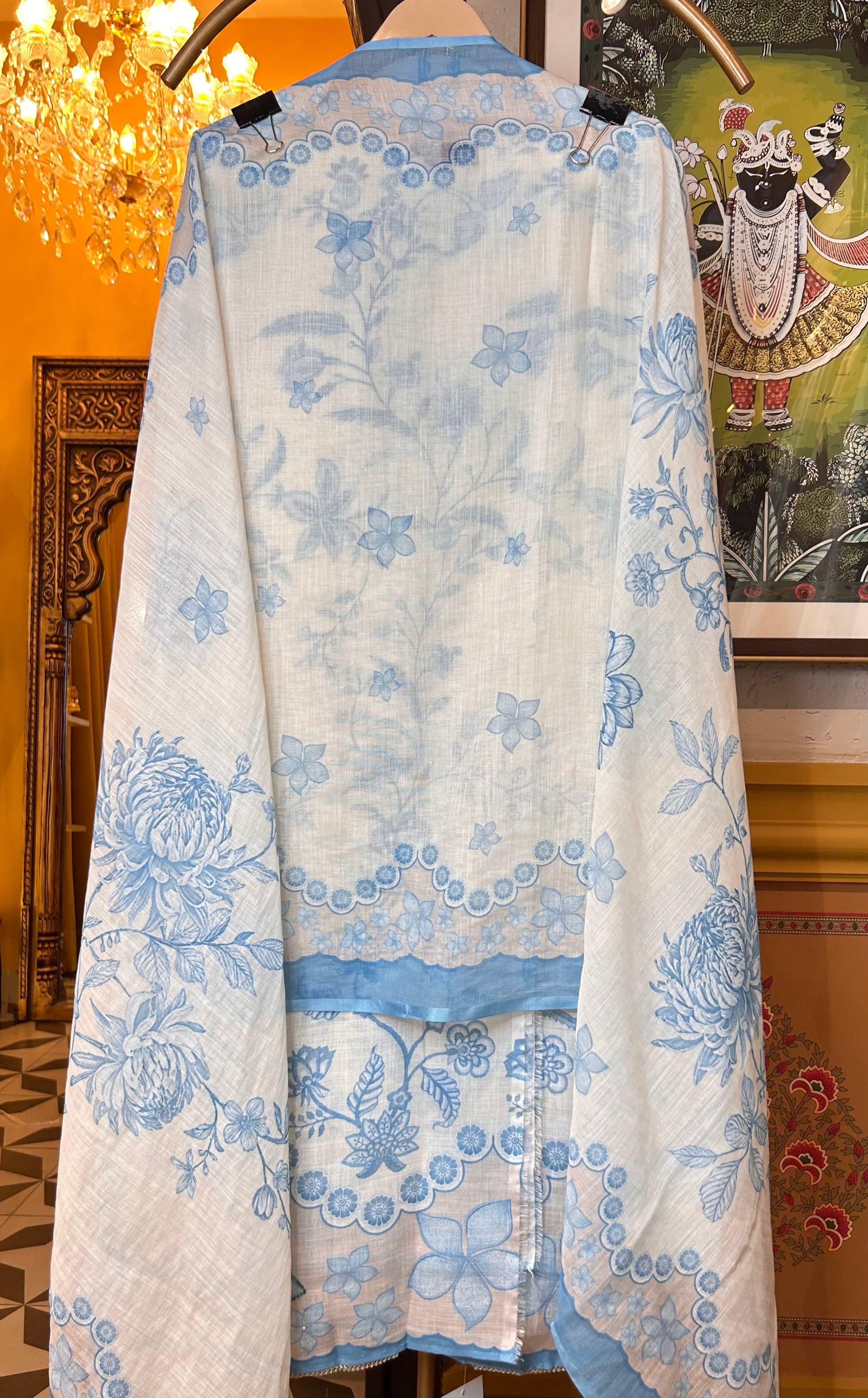 The pure linen shirt (2.5mtr) features intricate digital prints that evoke subtle artistry, offering a fluid silhouette with a natural, breezy texture. Paired with a pure linen digital printed dupatta (2.25mtr), the look feels complete — light, elegant, and refreshingly minimal. 💞