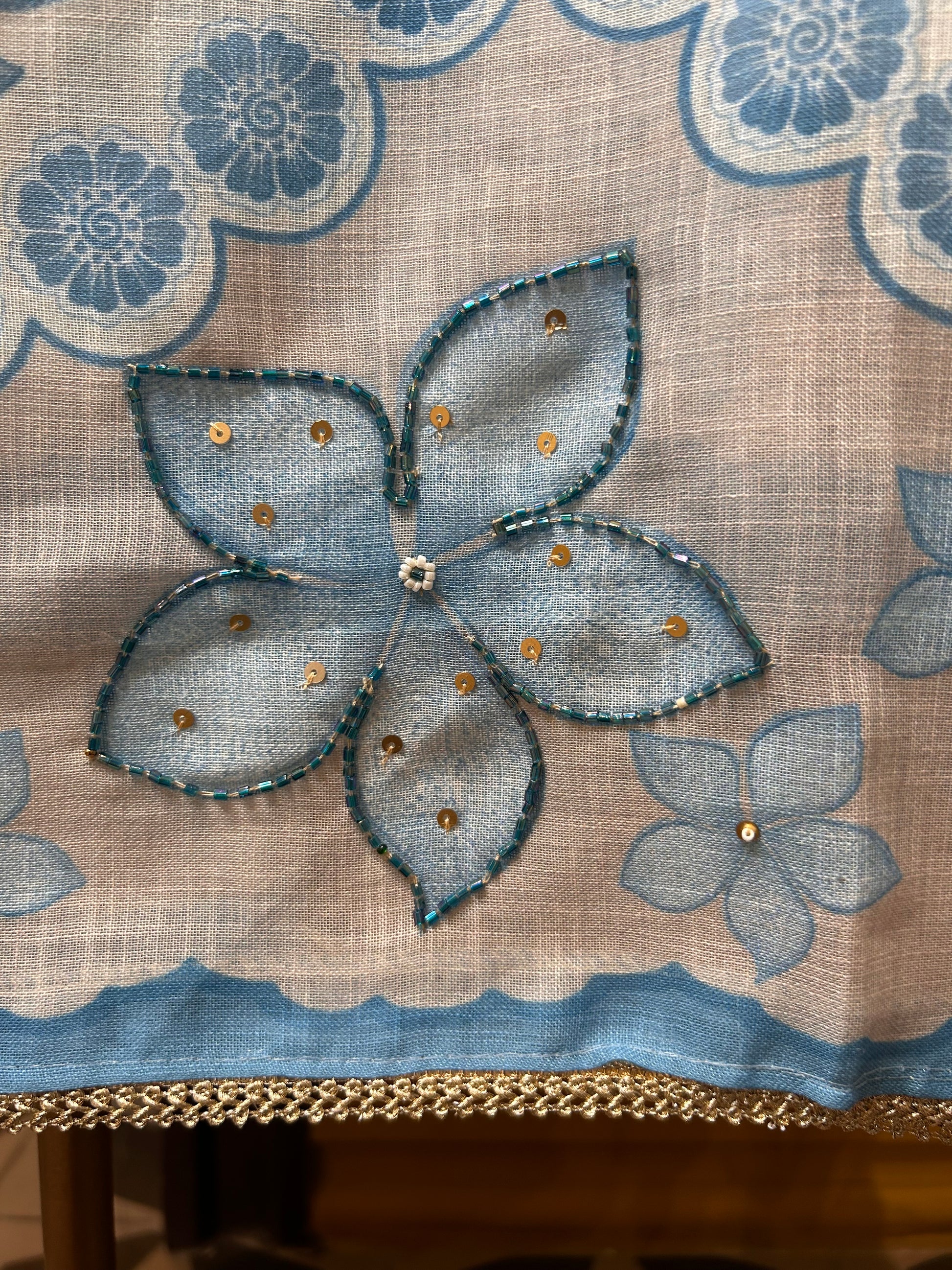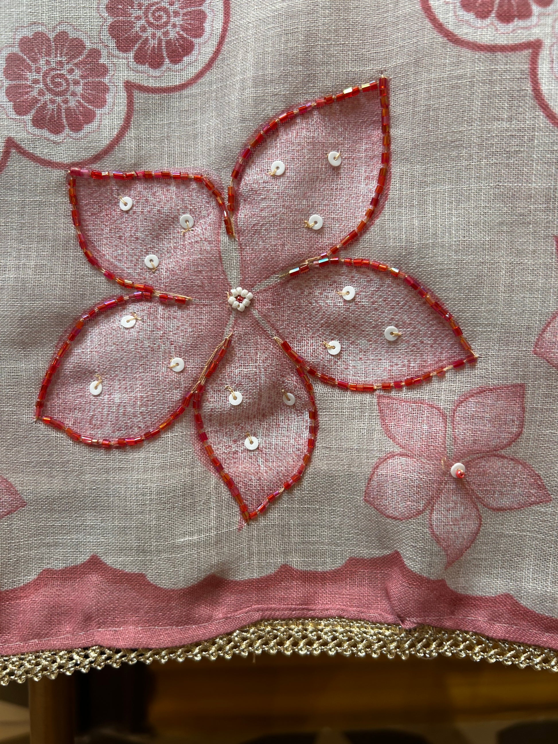 A cotton shantoon bottom (2.5mtr) ensures all-day comfort without compromising on style, making this set ideal for day functions, casual festive gatherings, or warm weather soirées.