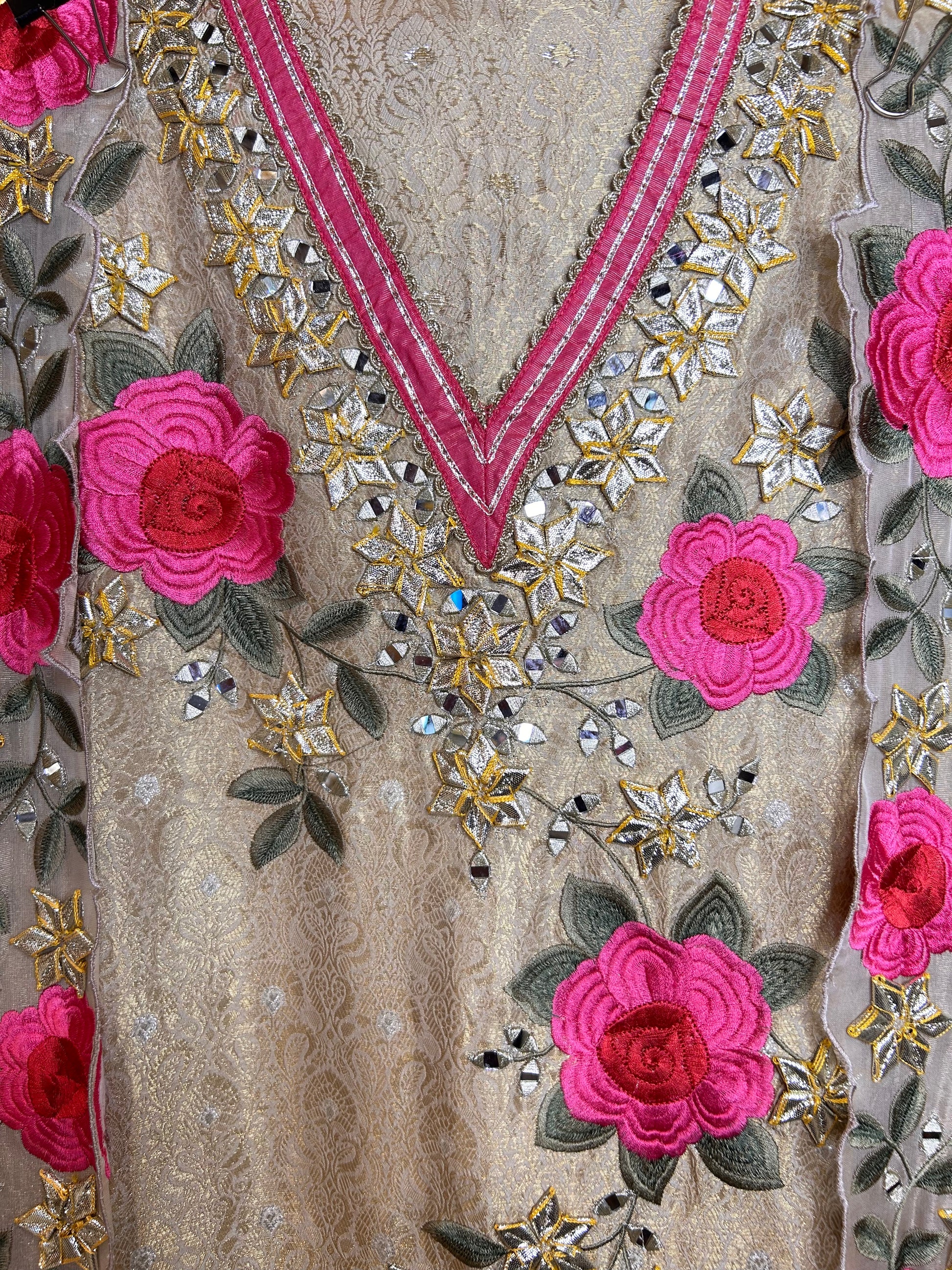 • Banarasi Brocade Shirt with Neckline Gotapatti Work & Ghera Embroidery – 2.5 meters