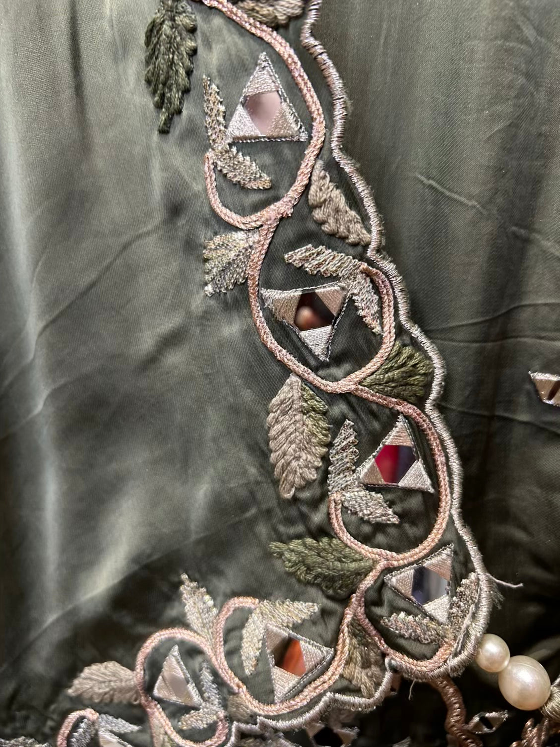 • Silk Organza Shirt (2.5 mtrs) – Intricately embellished with thread and mirror work for a radiant finish.
