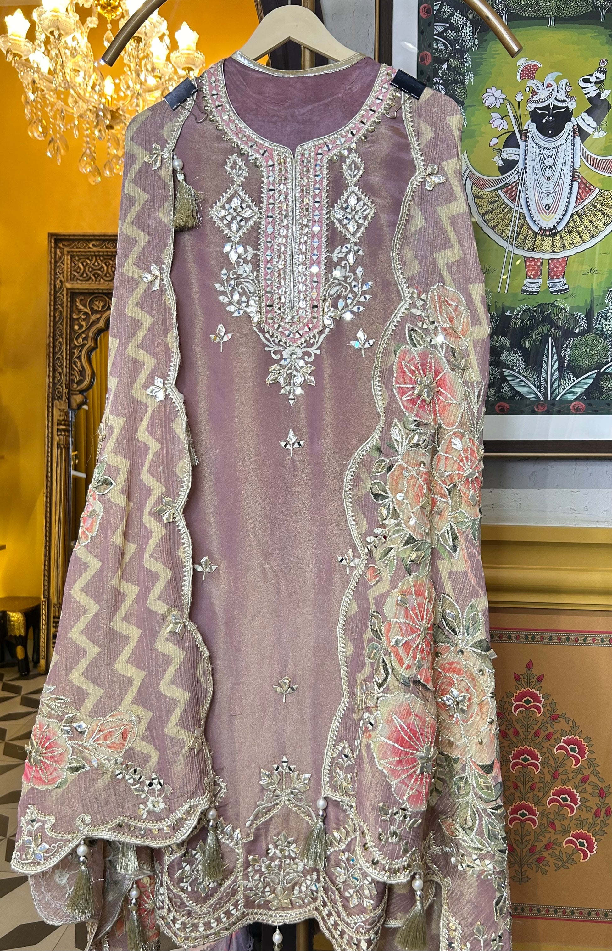 • Shimmer Organza Shirt with Gota & Real Mirror Work – 2.5 meters