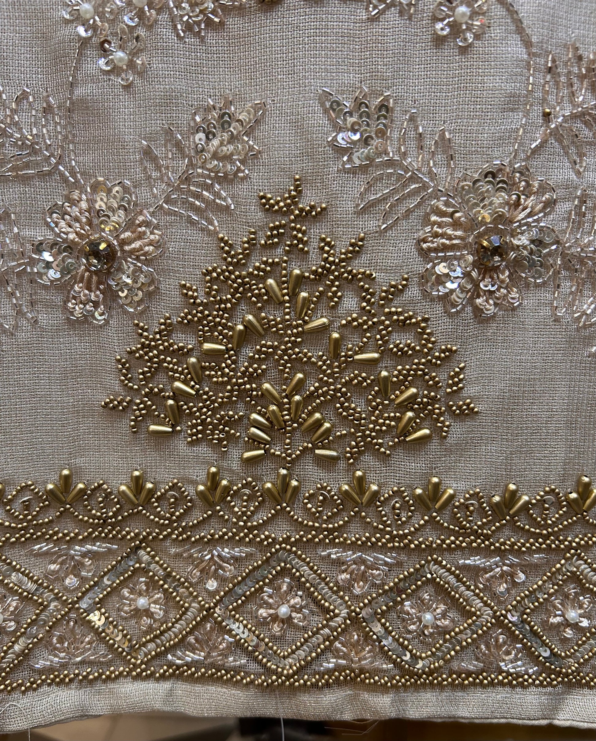 • Shimmer Organza Shirt with Handwork & Moti Accents – 2.5 meters