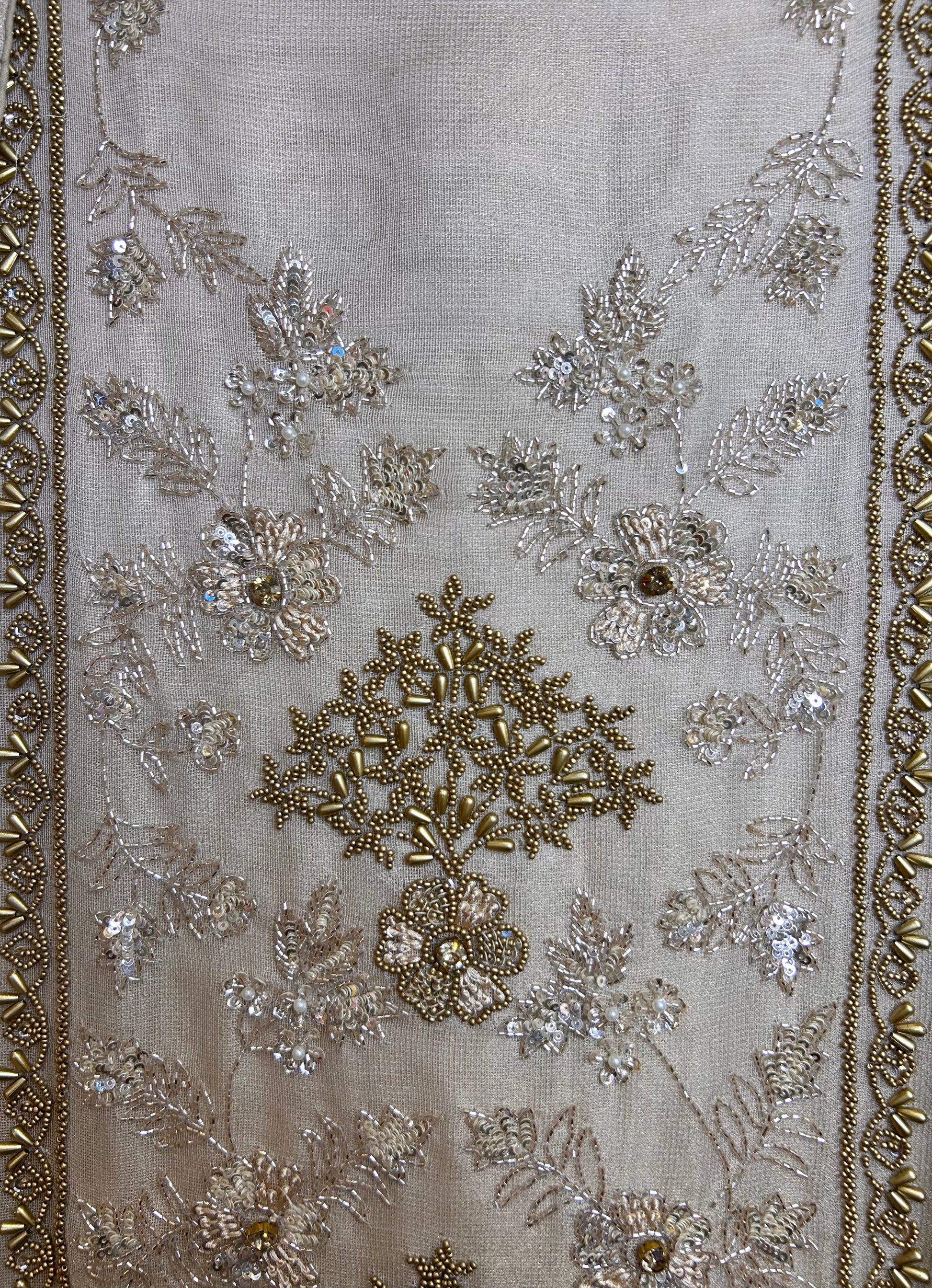 • Tissue Organza Dupatta with Four-Sided Hand Embroidery – 2.25 meters