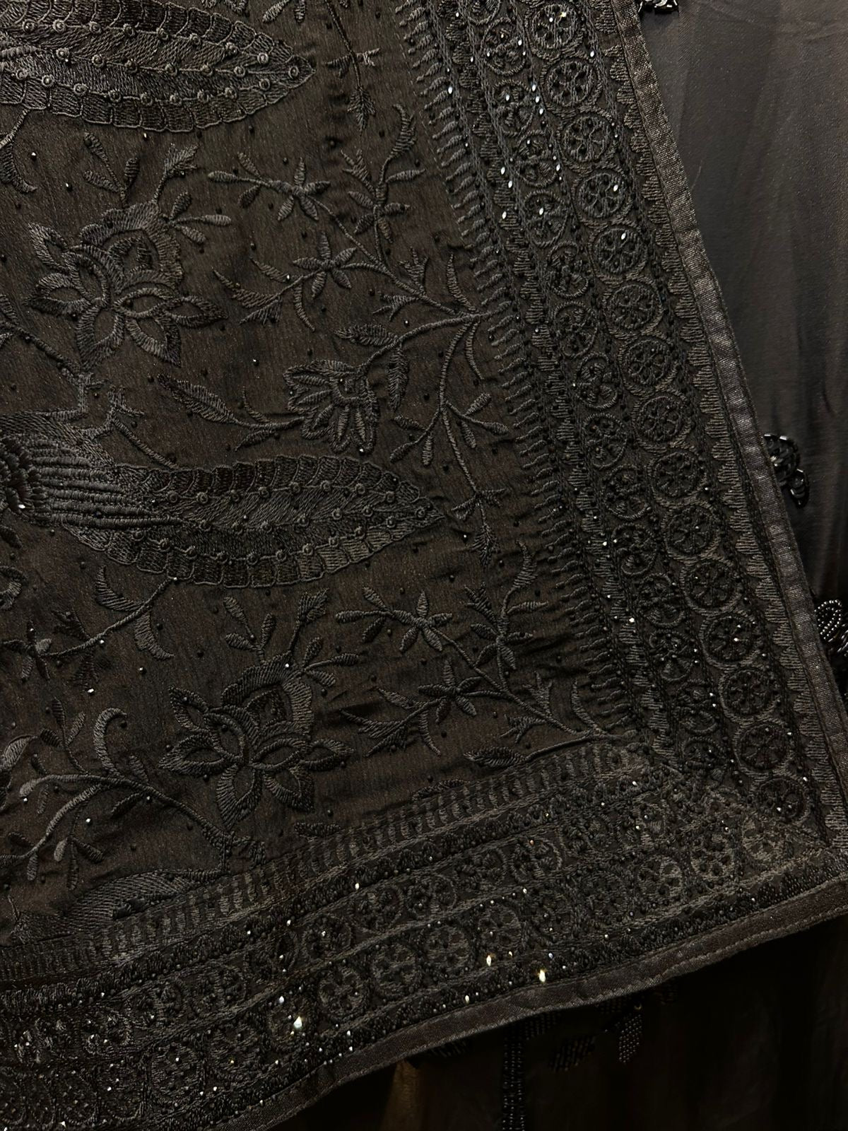 • Crush Tissue Dupatta (2.25 mtrs) – Enhanced with fine thread embroidery and Swarovski accents.