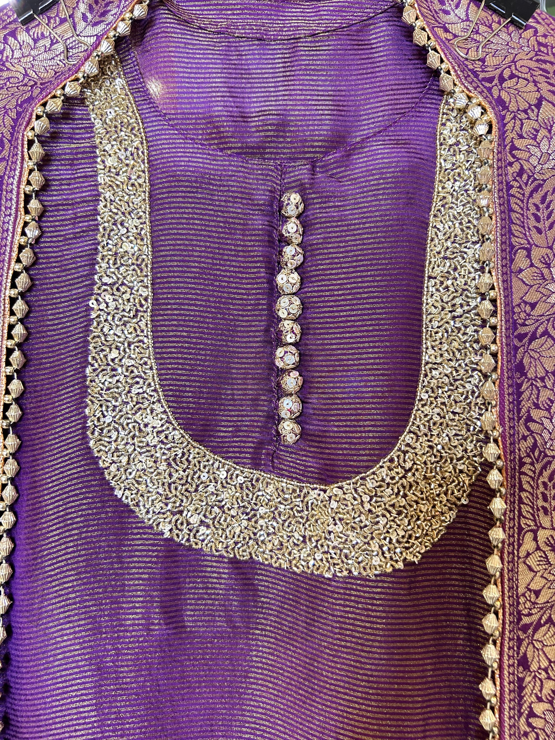 - Shimmer Organza shirt adorned with Swarovski and cut Dana detailing along the neckline (2.5 mtr)
