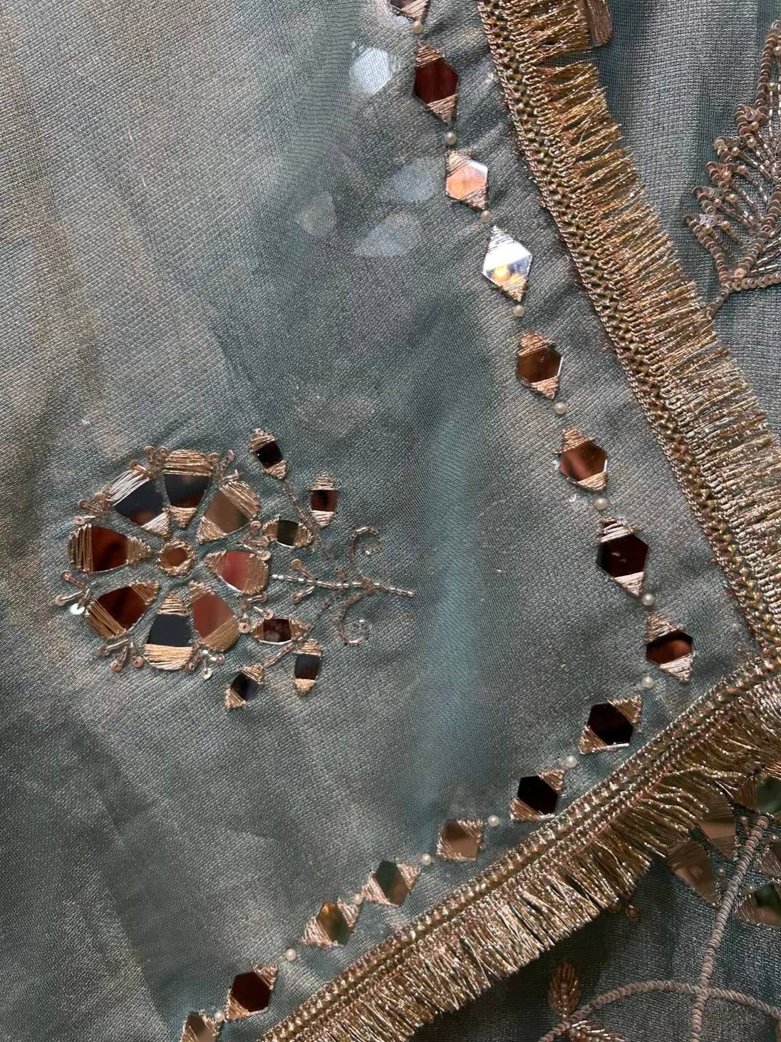 • Shimmer Organza Suit (2.5 mtrs) – Embellished with real mirror and cut-dana sequin work for a radiant, handcrafted glow.