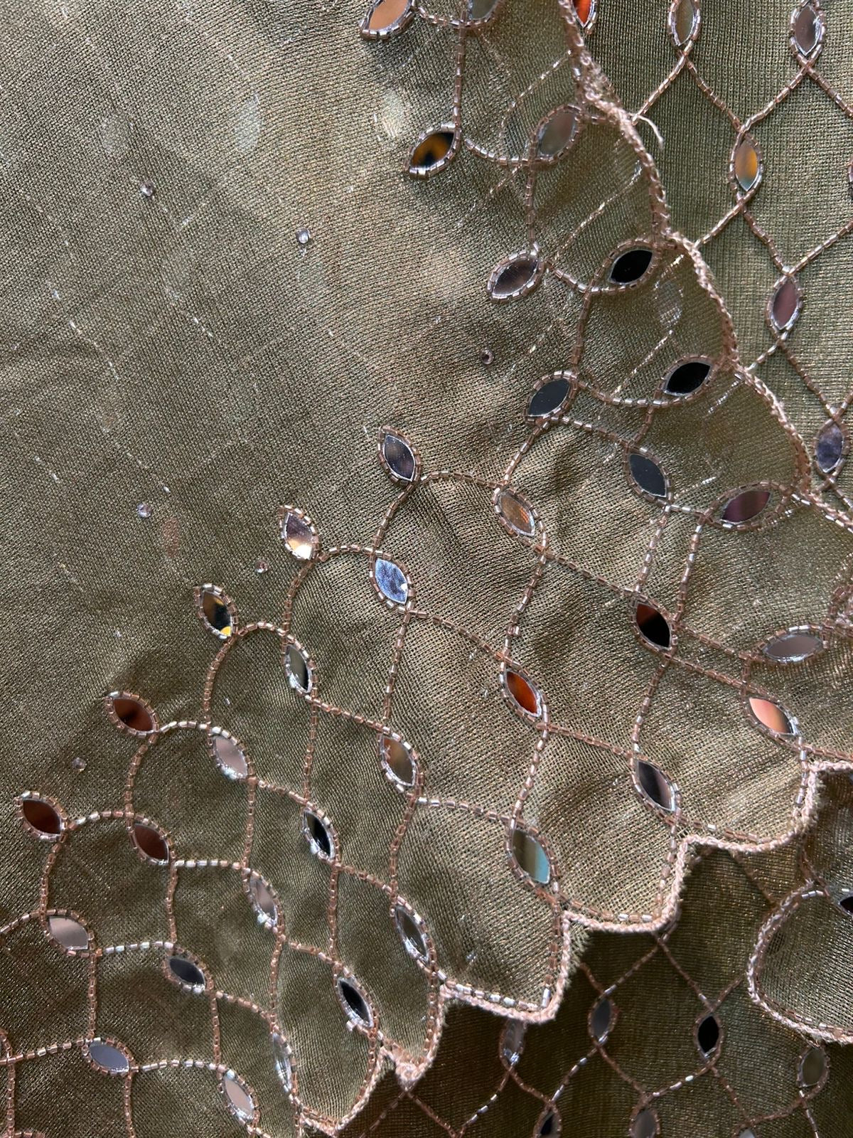 • Shimmer Organza Dupatta (2.25 mtrs) – Detailed with a four-side mirror border for a sparkling finish.