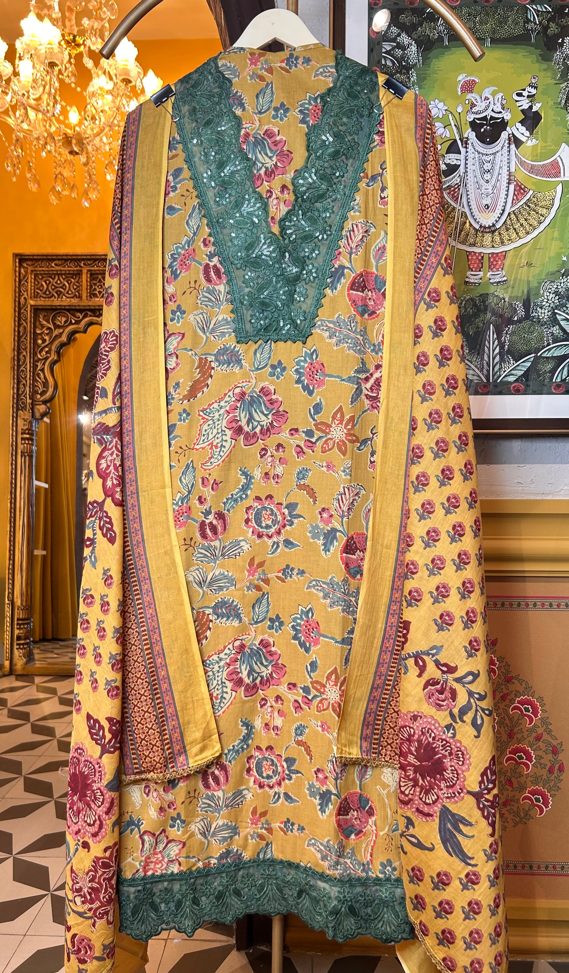 • Cotton Digital Printed Shirt with Organza Lace Neckline (2.5 mtr)
