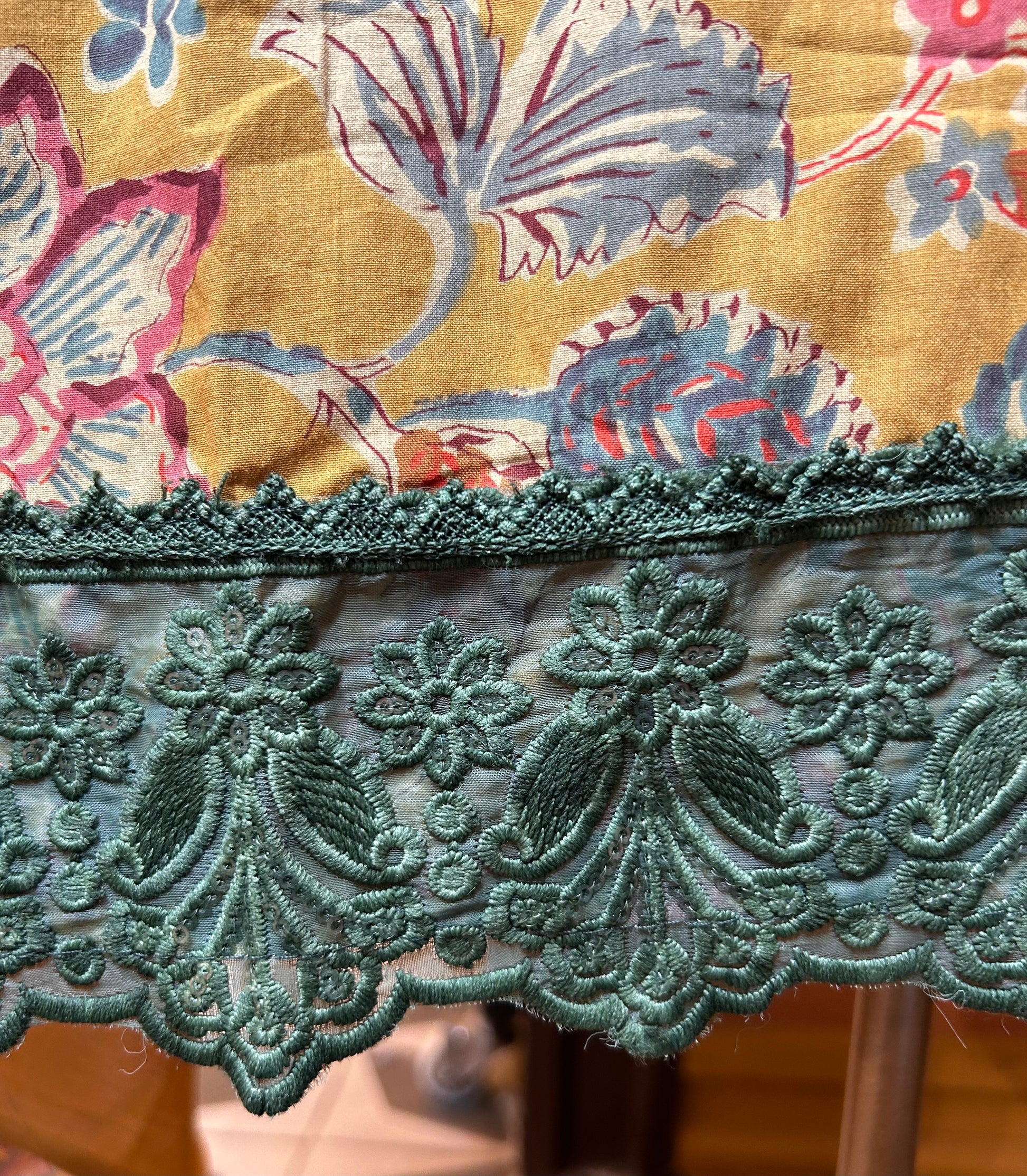 Soft cotton adorned with elegant digital prints, elevated with an organza lace neckline for a refined touch.