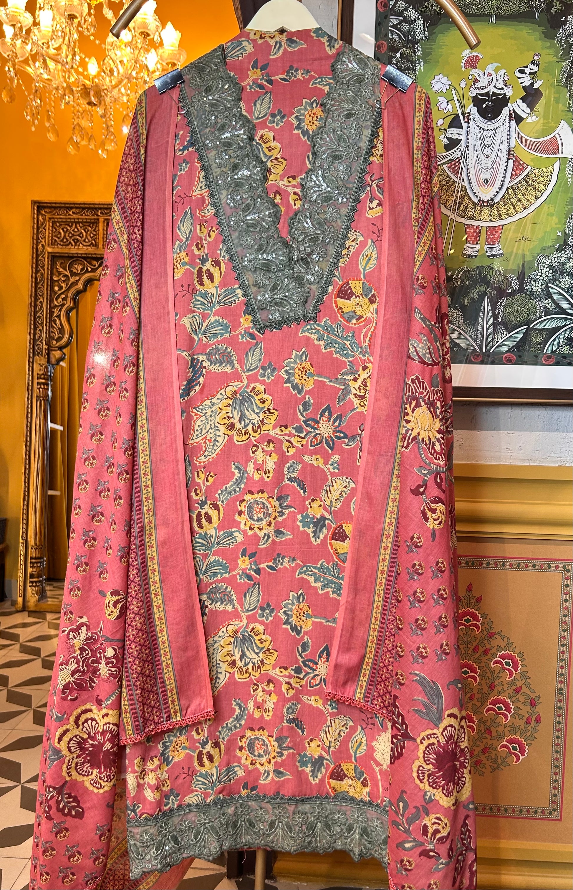• Cotton Digital Printed Shirt with Organza Lace Neckline (2.5 mtr)