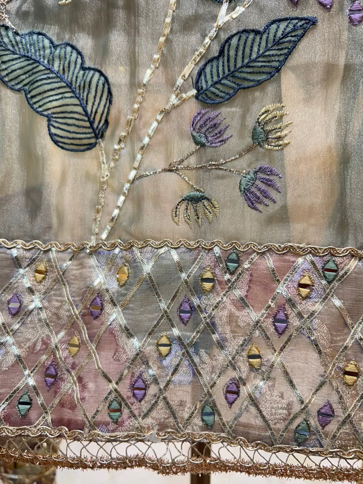 • Organza Dupatta (2.25 mtrs) – Enhanced with four-side gota and real mirror borders, adding a traditional glow.