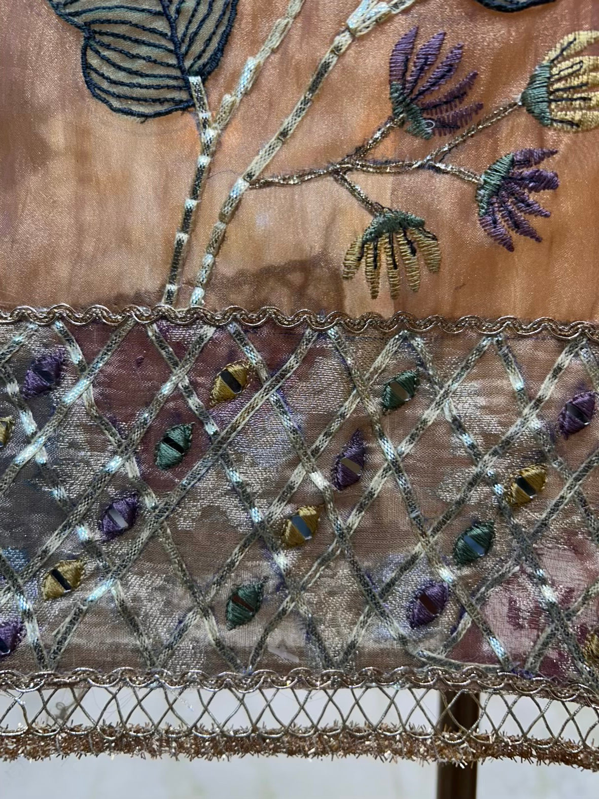• Organza Dupatta (2.25 mtrs) – Enhanced with four-side gota and real mirror borders, adding a traditional glow.