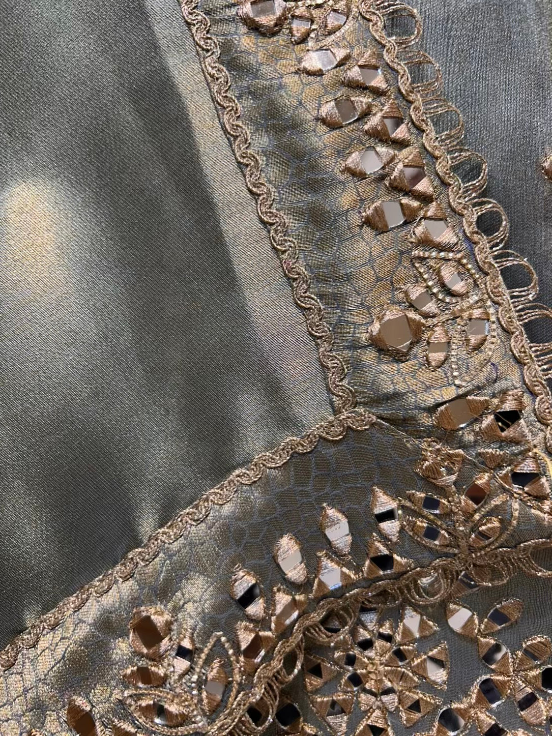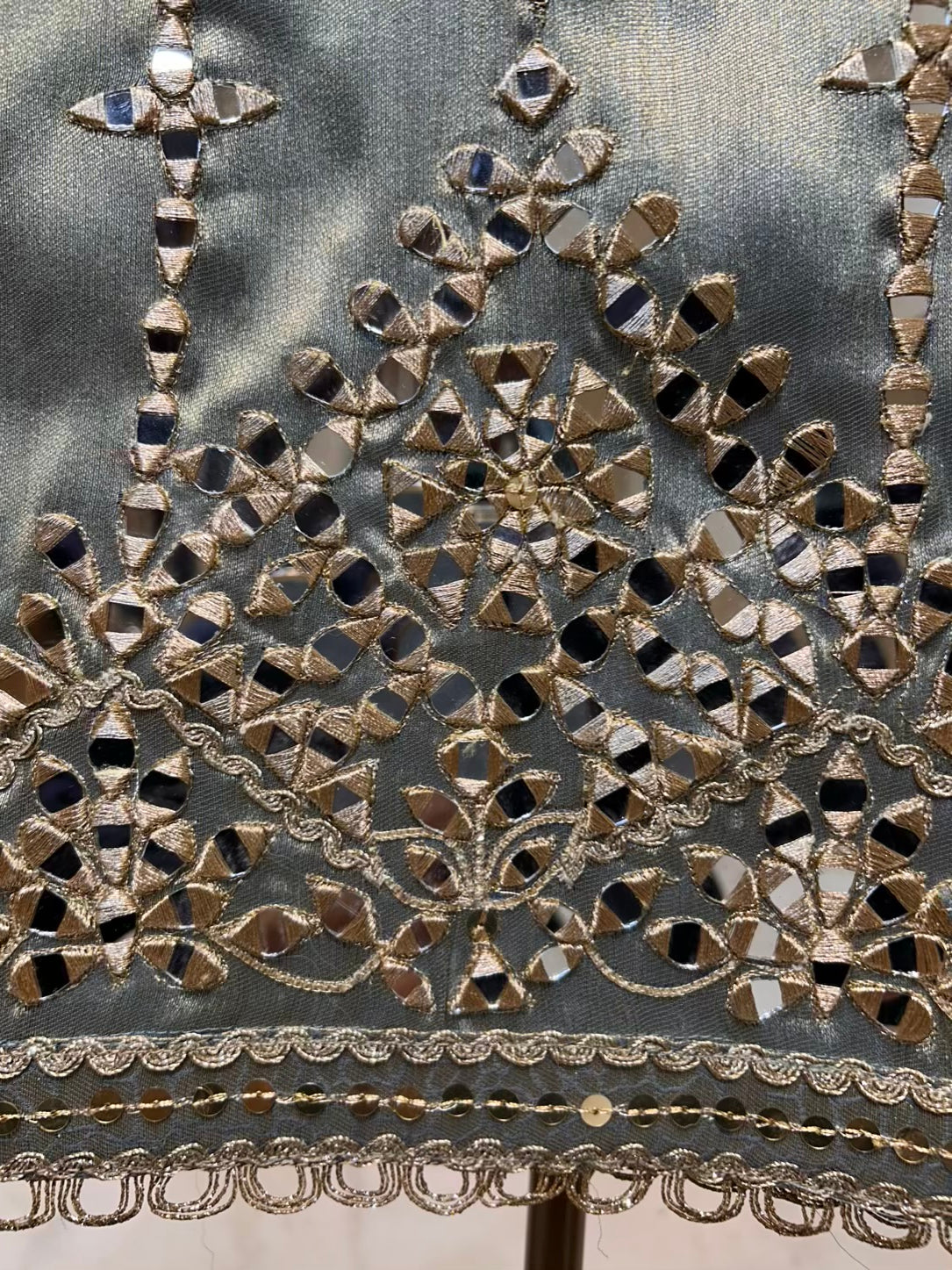 • Shimmer Organza Suit with Real Mirror Work (2.5 mtrs)