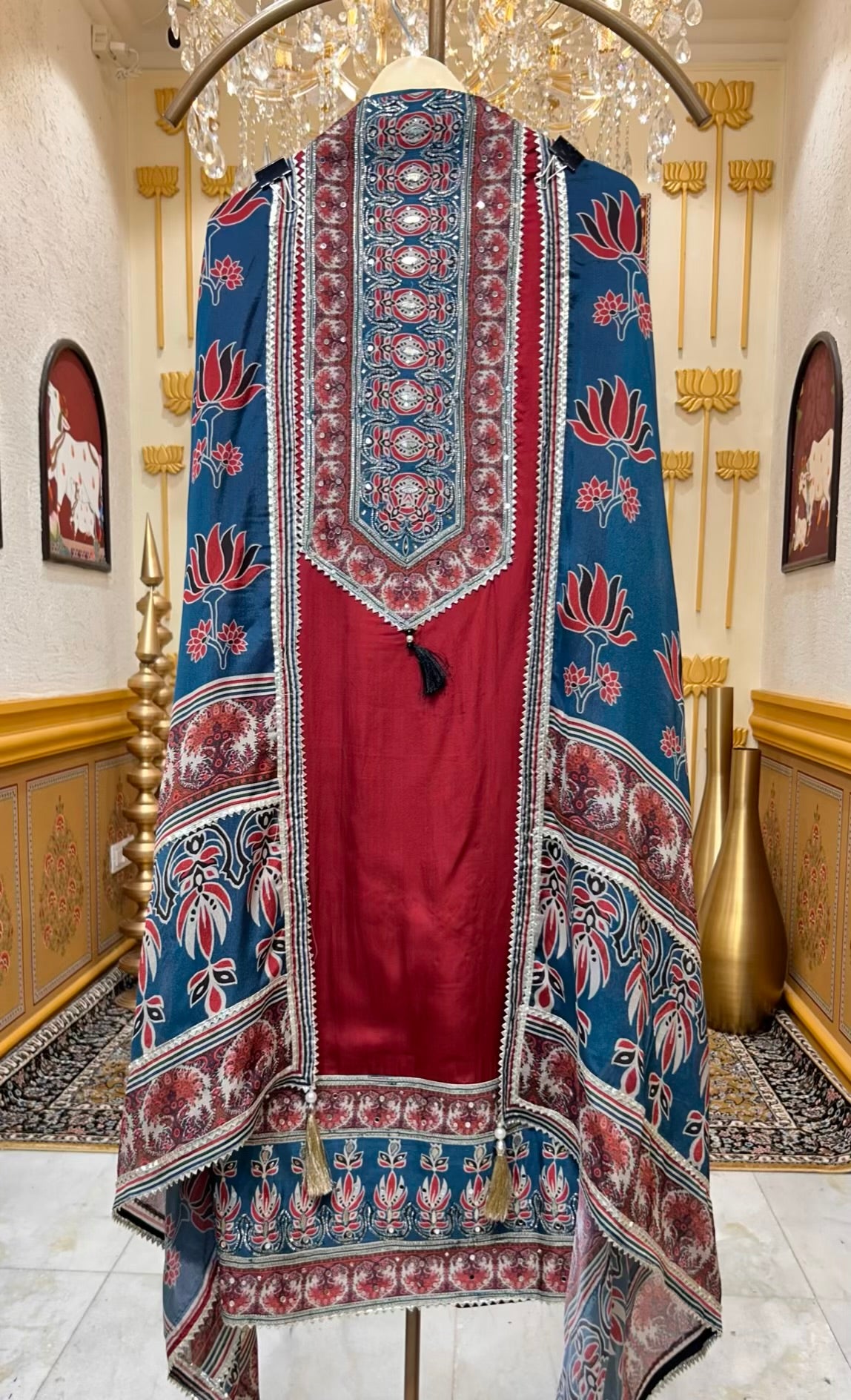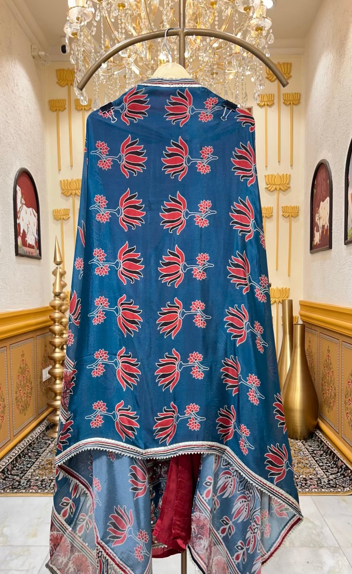 • Digital Printed Silk Organza Dupatta (2.25 mtrs) – Lightweight and sheer, balancing structure with grace.