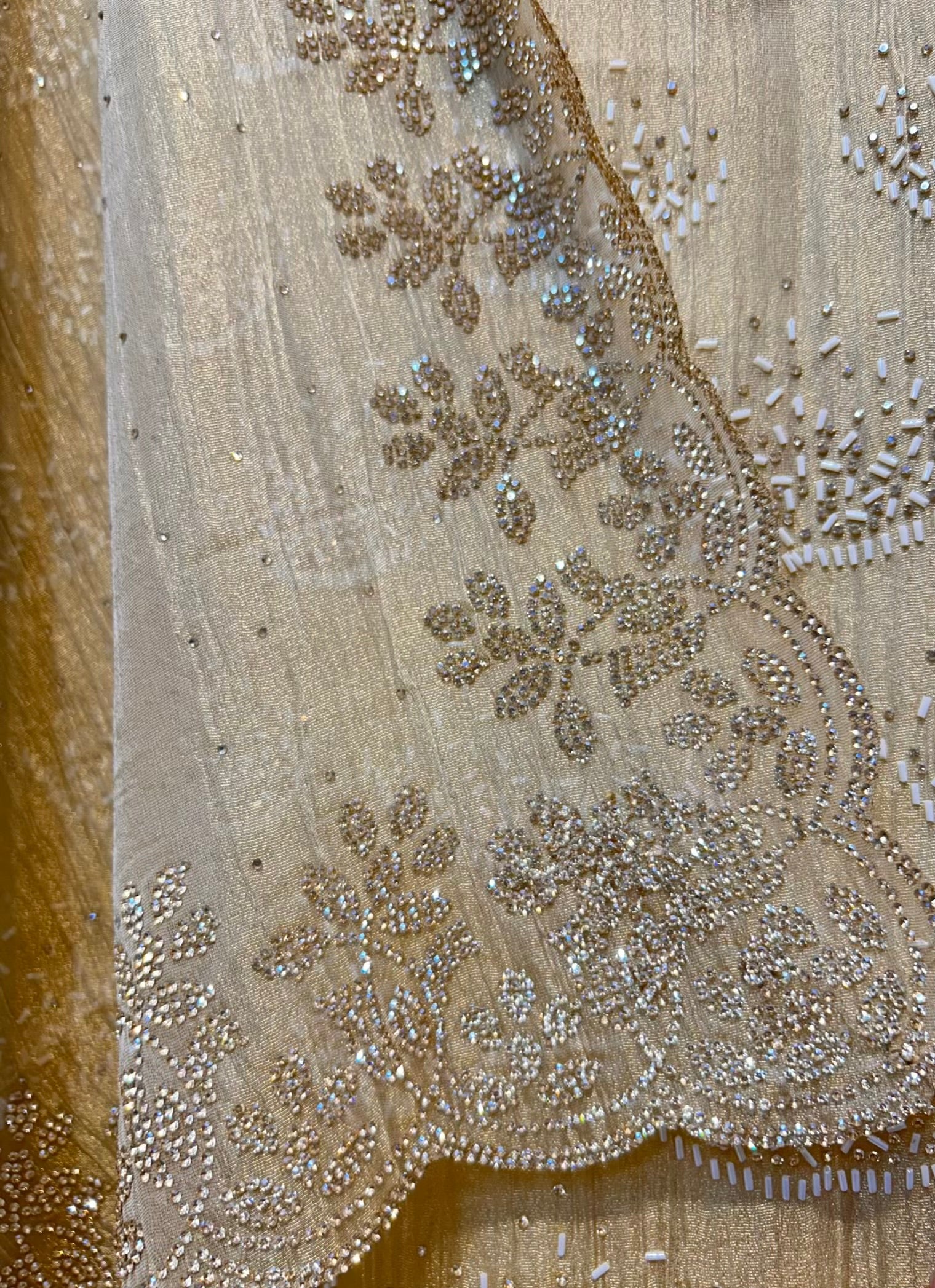 • Crush Tissue Suit (2.5 mtrs) – Enhanced with intricate all-over handwork for a richly crafted, luminous finish.
