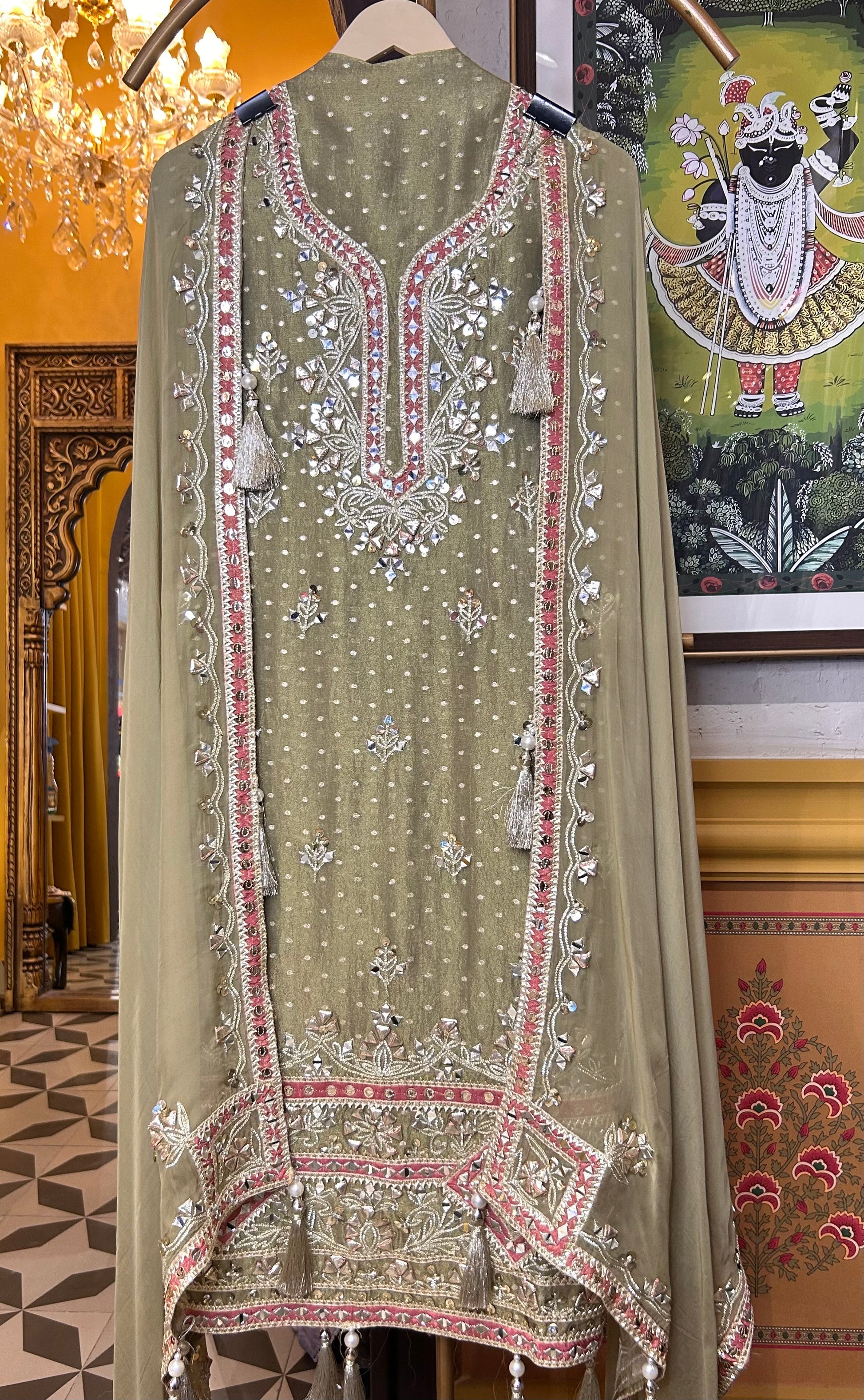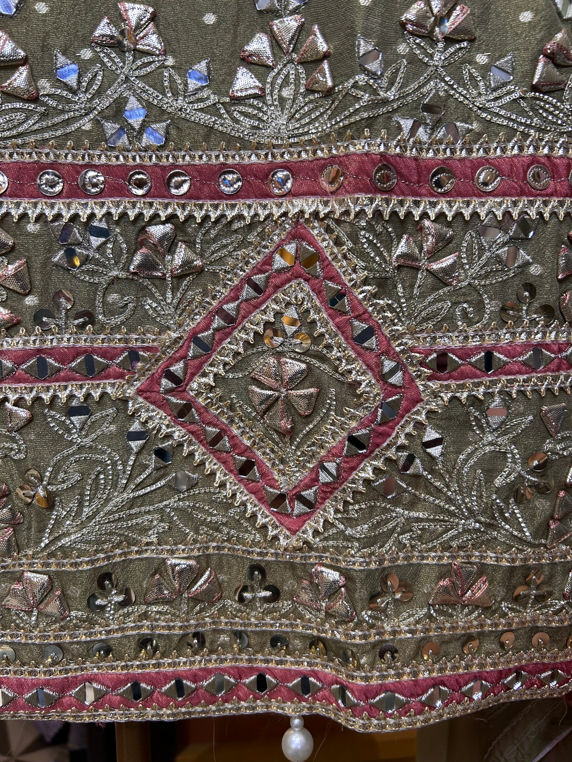• Shimmer Organza Shirt with Gota & Real Mirror Work – 2.5 meters