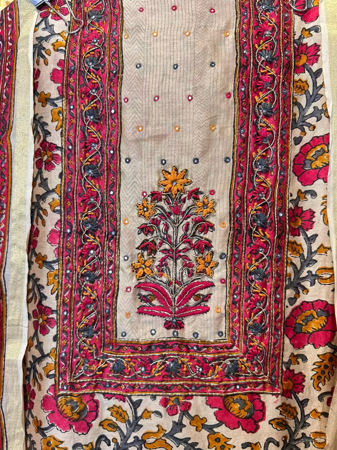 - Pure Chanderi Digital Printed Shirt with Neckline Handwork (2.5 mtrs) – Elegant prints enhanced by intricate embroidery for timeless beauty.