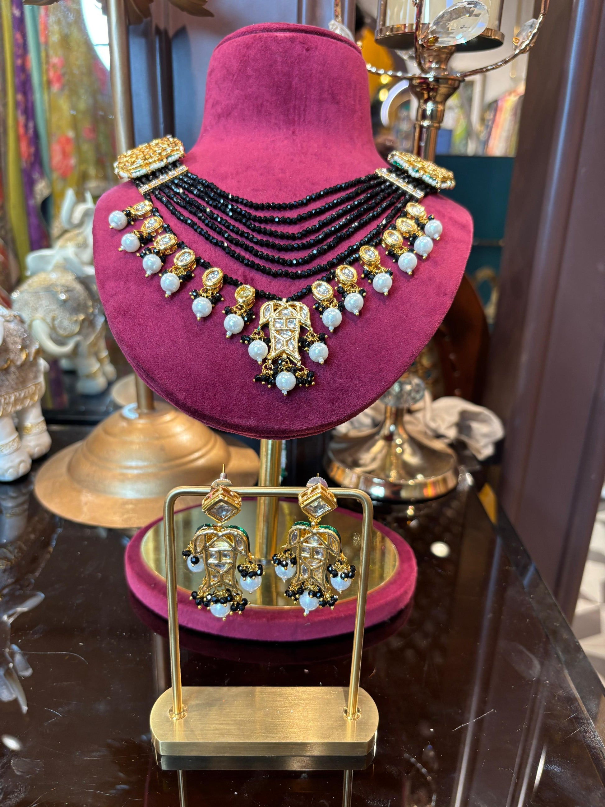 Ruh-e-Noor Beaded Choker Set (Black)