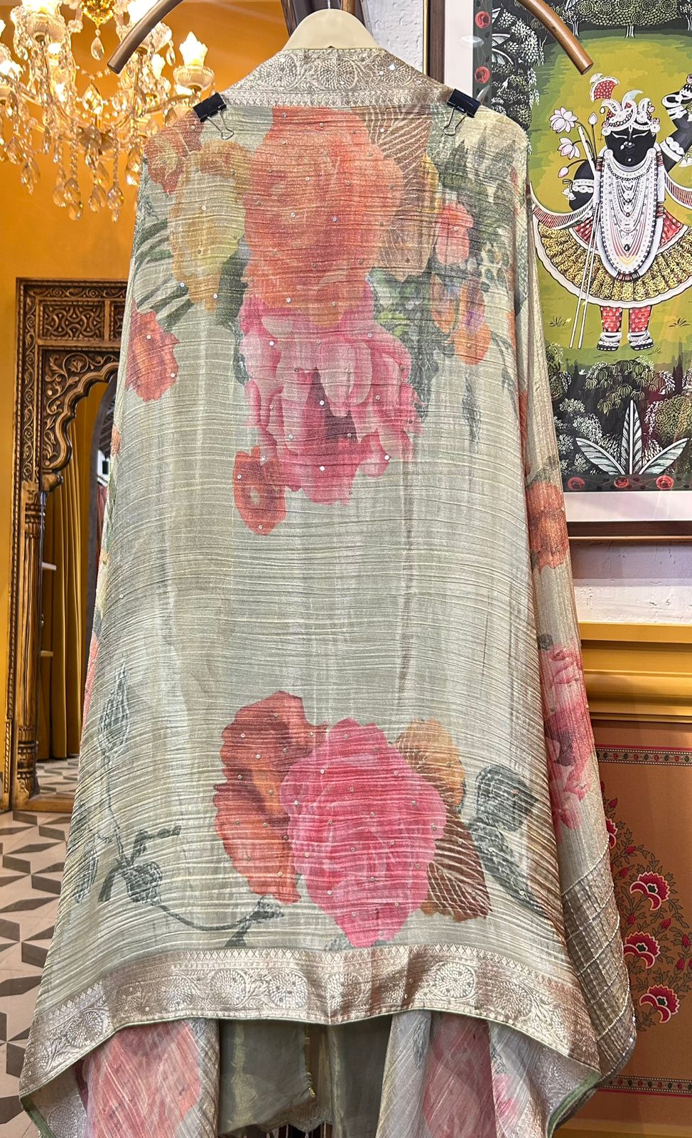 • Crush Tissue Printed Dupatta (2.25 mtrs) – Lightweight and textured, adding a hint of artistry.