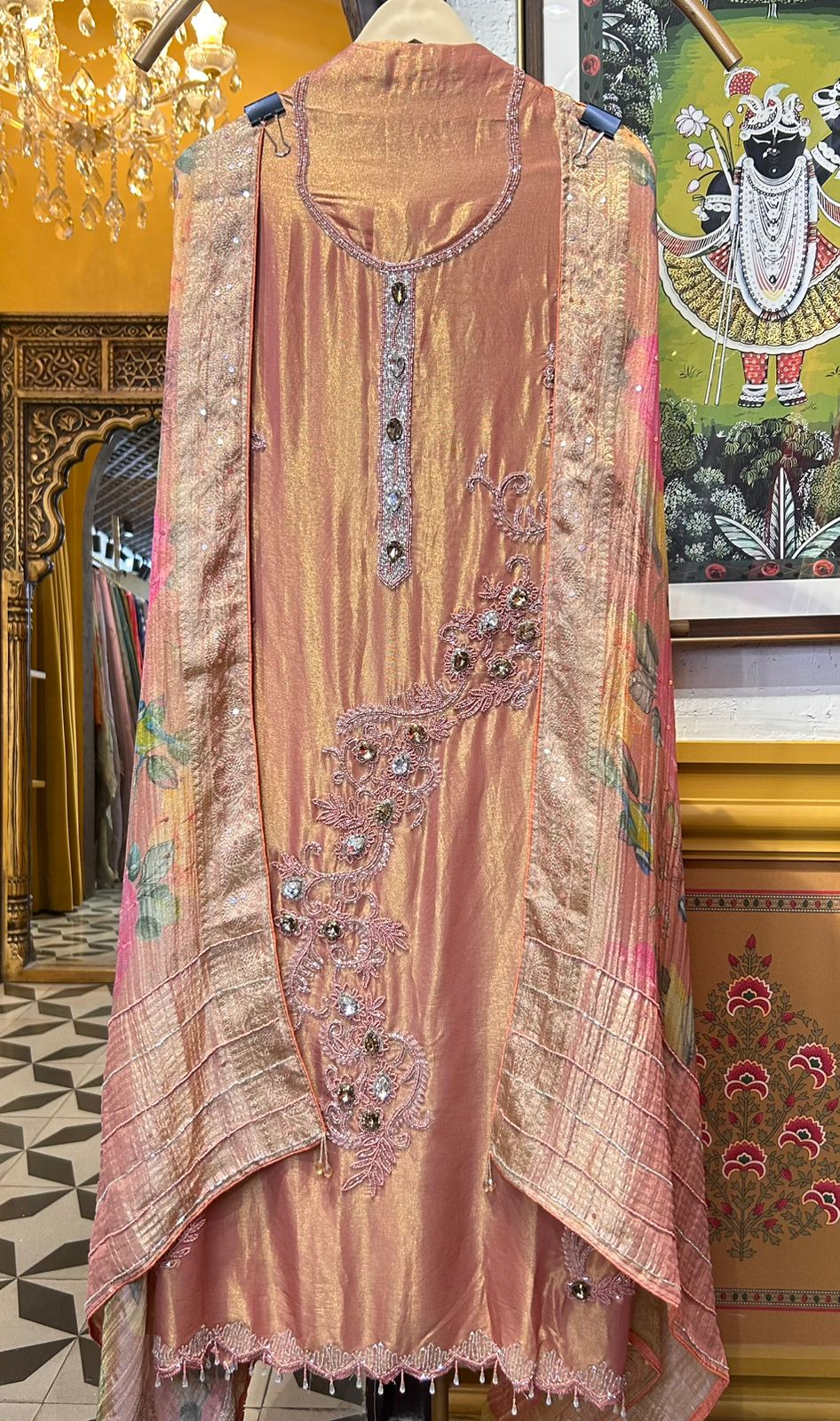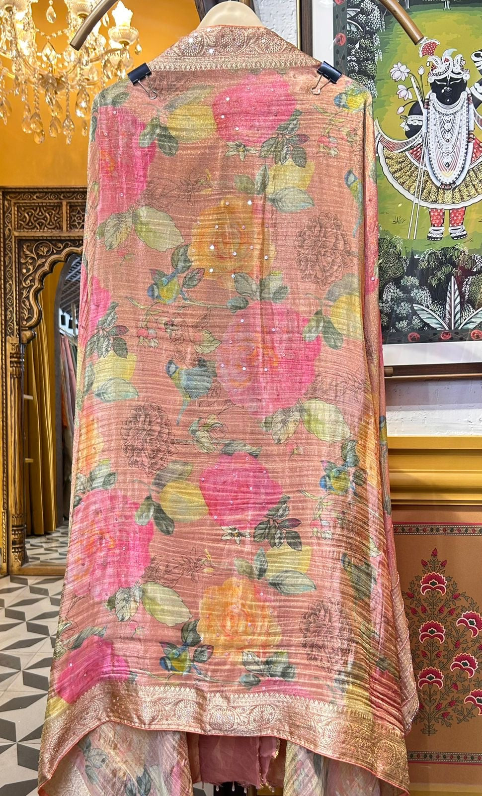 • Crush Tissue Printed Dupatta (2.25 mtrs) – Lightweight and textured, adding a hint of artistry.