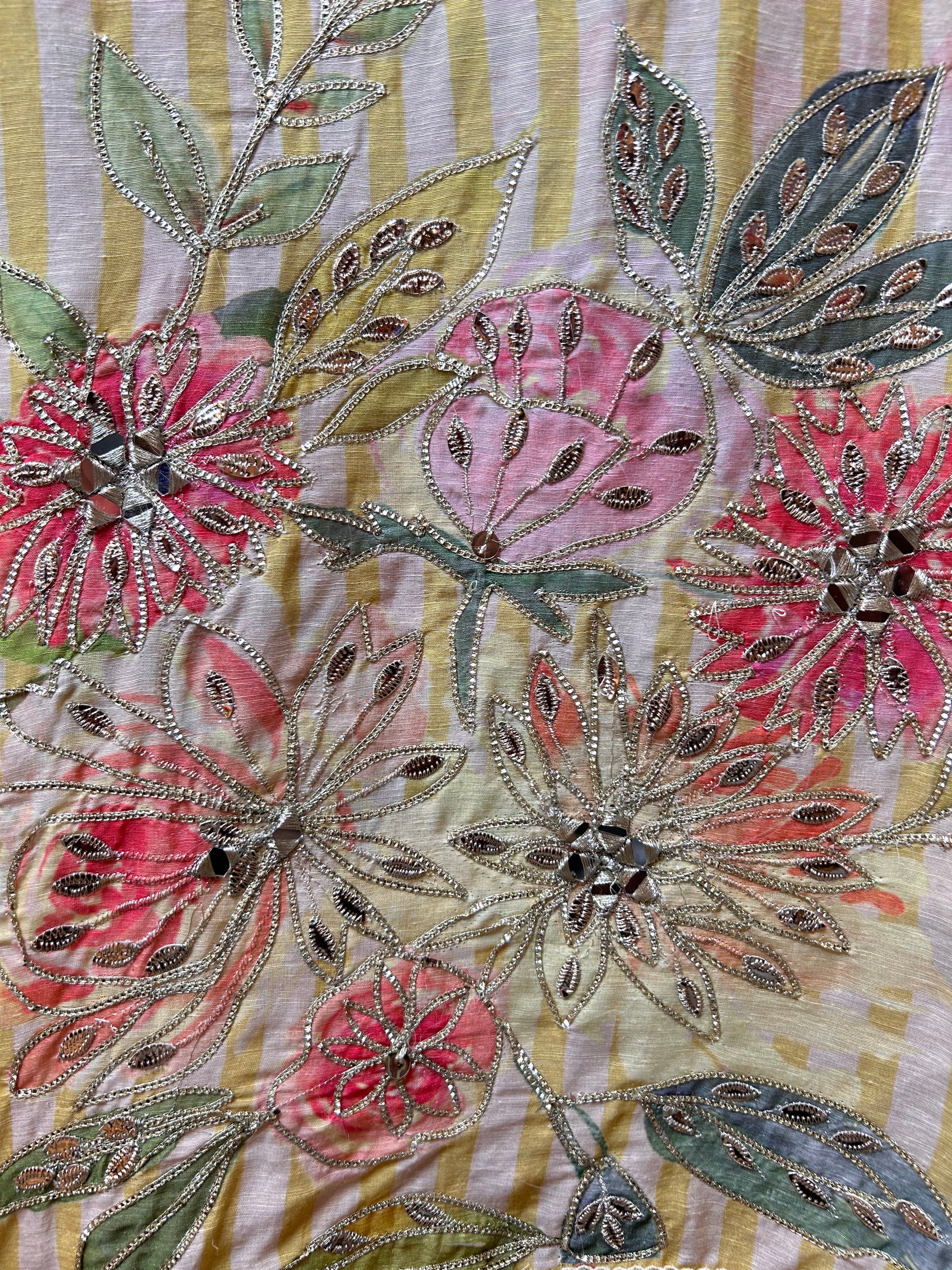 Delicately printed and adorned with real mirror work, this dupatta adds fluid charm and shimmer with every drape.