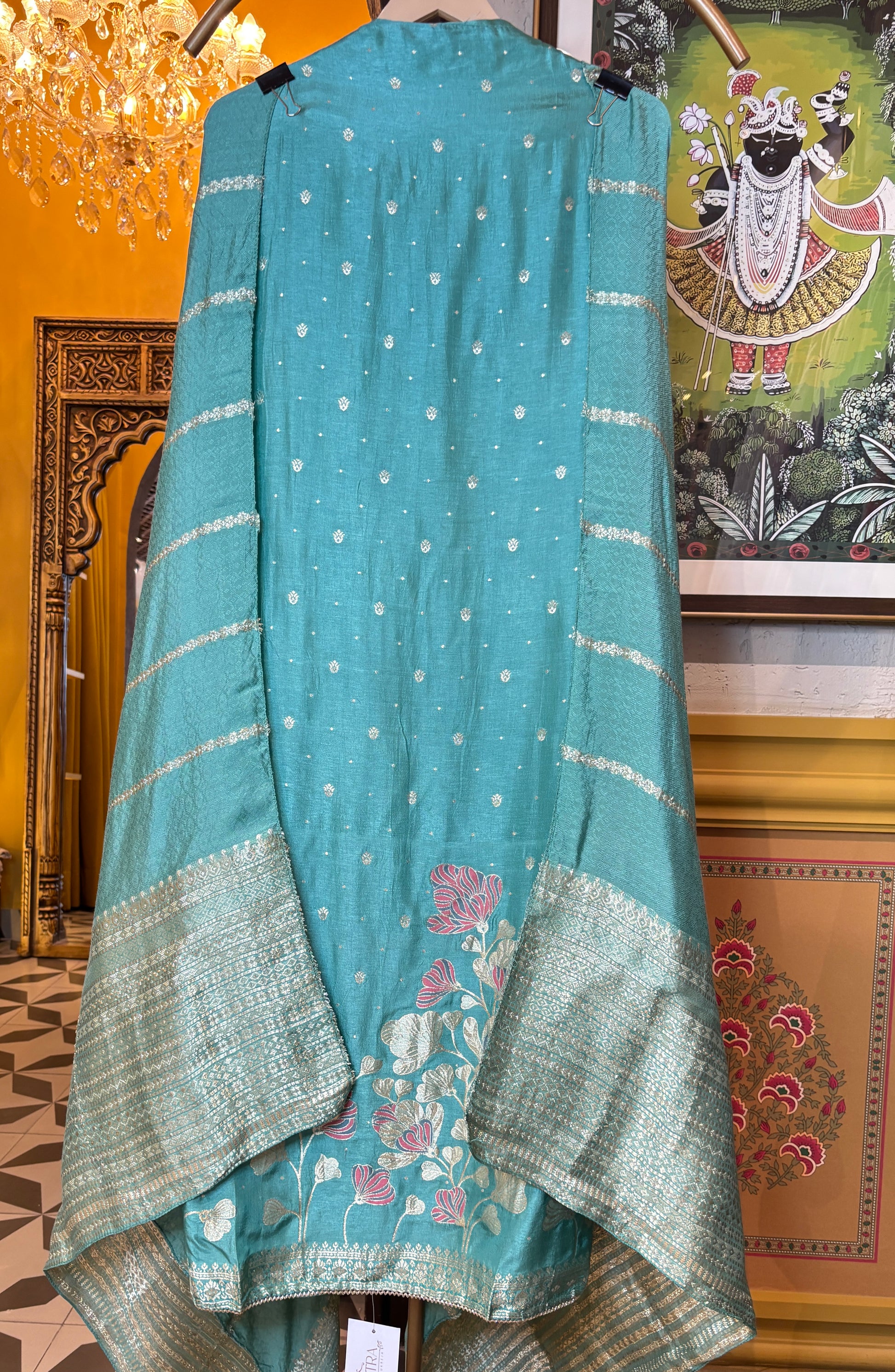 • Banarasi Silk Shirt with Zari Work on Ghera (2.5 mtr)