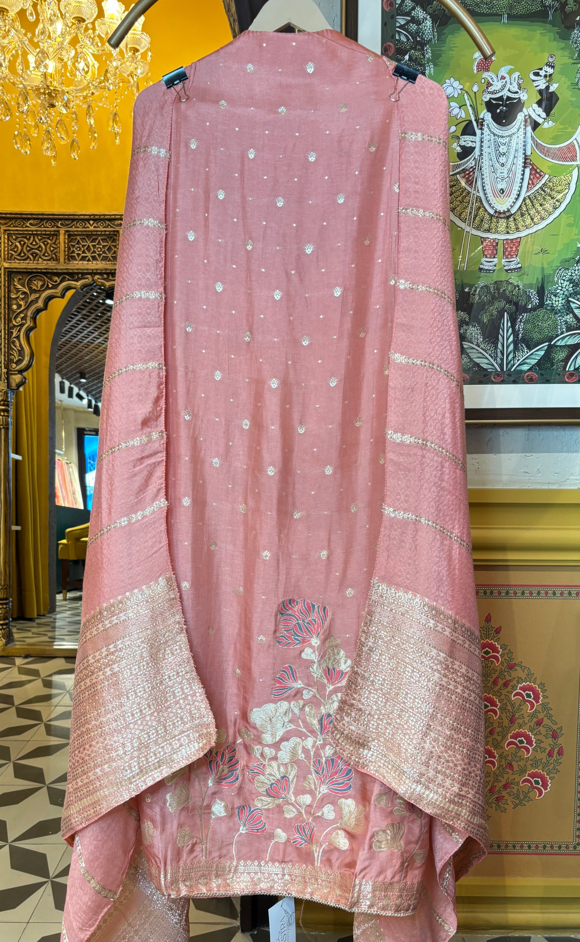 • Banarasi Silk Shirt with Zari Work on Ghera (2.5 mtr)
