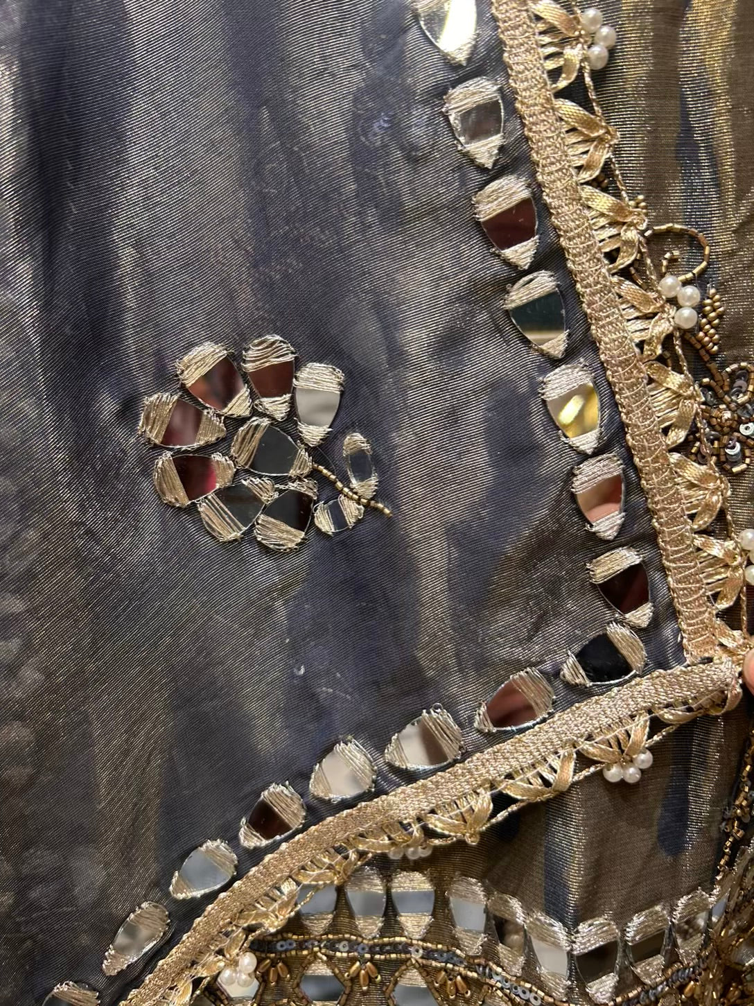 • Shimmer Organza Suit (2.5 mtrs) – Embellished with real mirrors, sequins, Moti, and cut Dana work for a radiant finish.