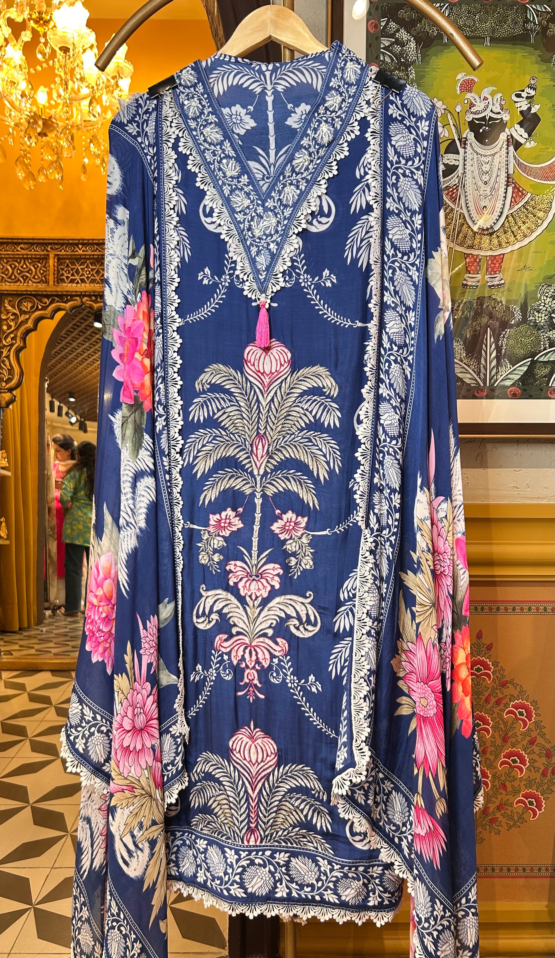 Soft, stylish, and season-perfect — the Saanjh Bela Muslin Suit is your go-to for effortless grace. The muslin shirt features a subtle all-over print, beautifully highlighted with delicate Moti work on the neckline for that refined festive edge. Completed with a breezy digital-printed dupatta and a comfortable cotton shantoon bottom, this set strikes the perfect balance between traditional charm and everyday elegance.