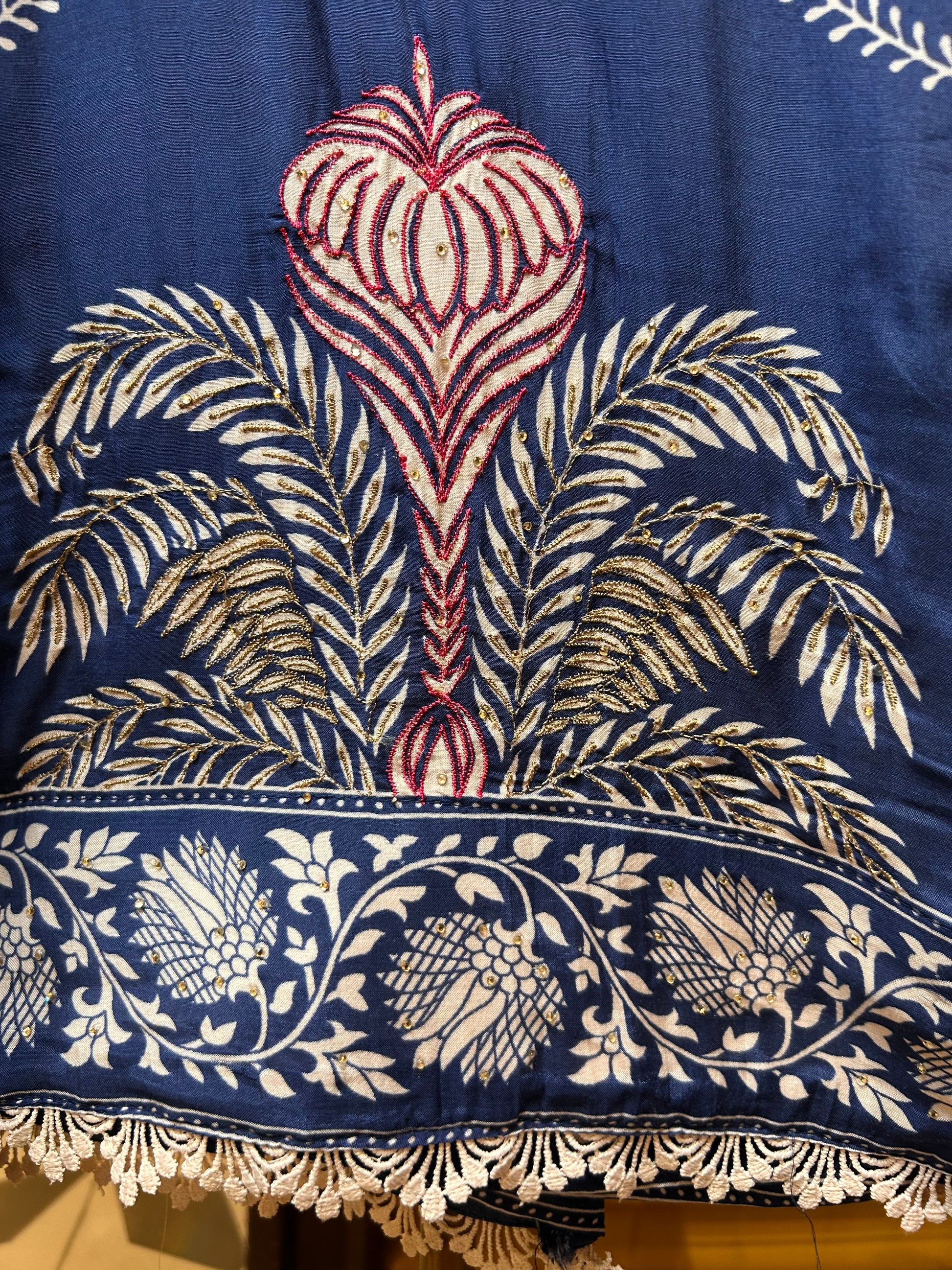 - Muslin printed shirt with Moti work neckline – 2.5 mtr