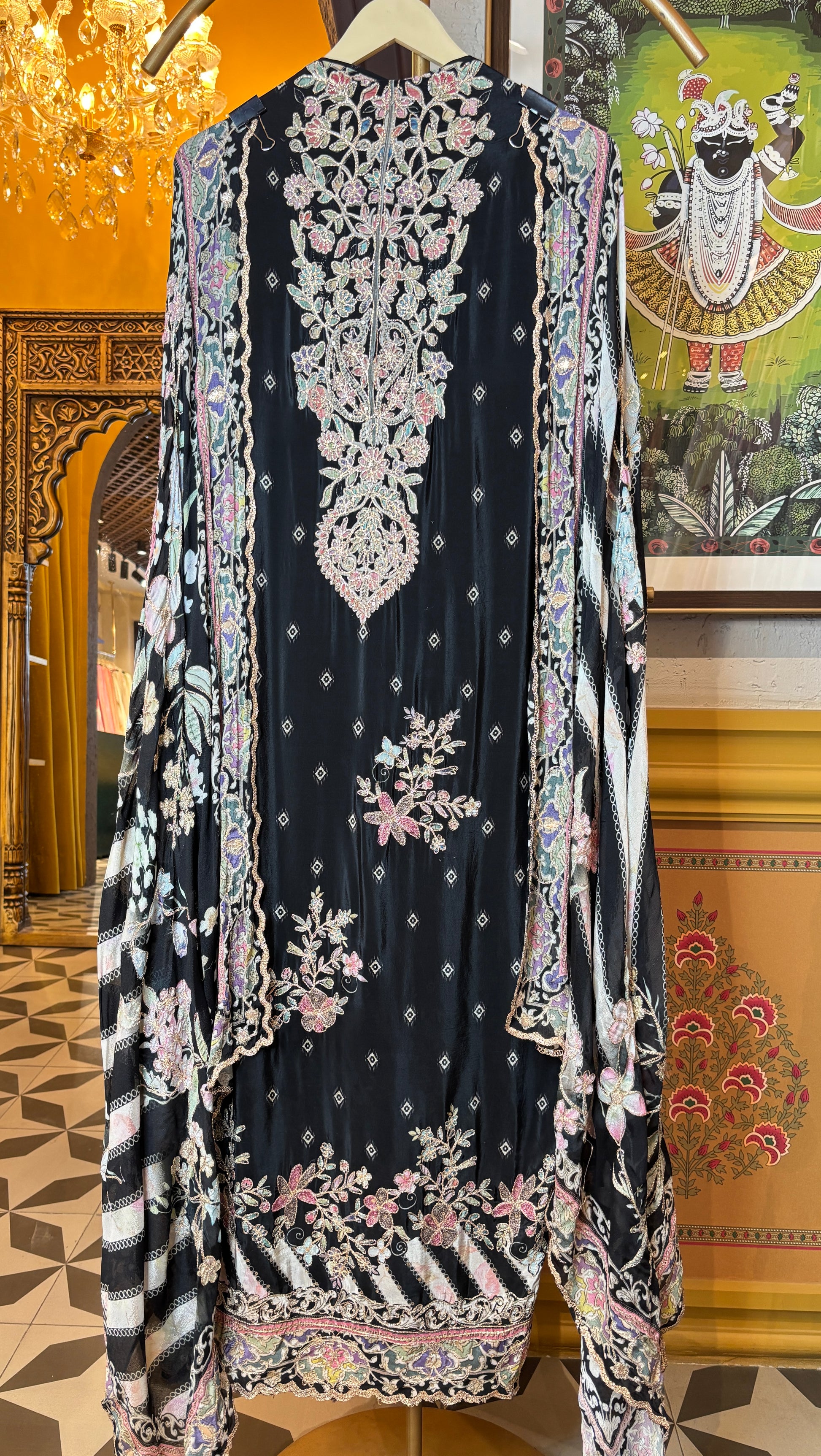 Where modern charm meets timeless luxury — the Saanve Crepe Suit is designed for the woman who shines in subtle details.