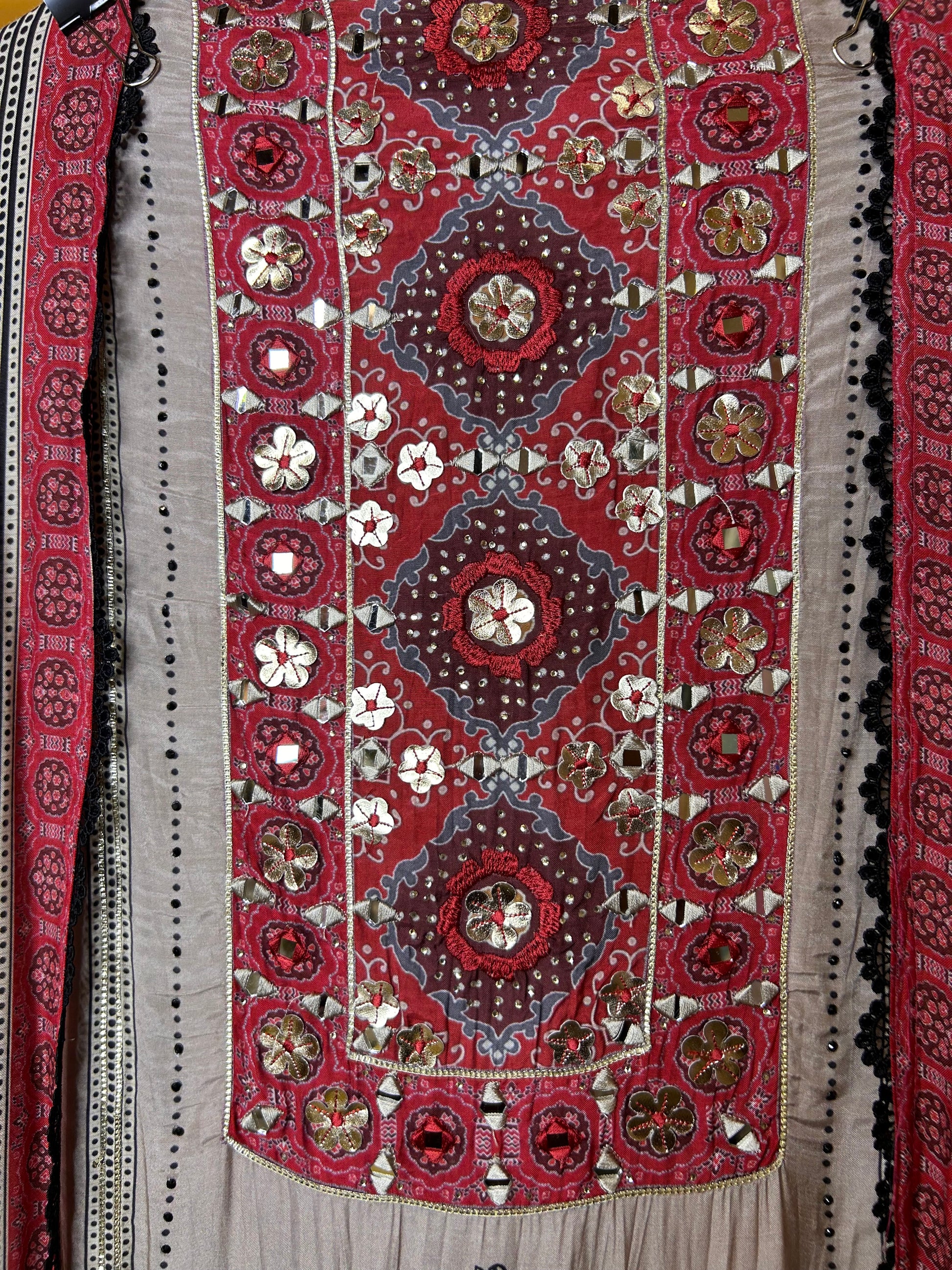 Muslin Digital Printed Shirt with Real Mirror & Gota Work (2.5 mtr)