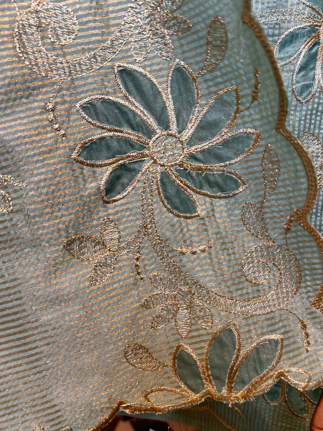 • Banarasi Chanderi Suit (2.5 mtrs) – Enhanced with intricate appliqué detailing that adds depth and refined elegance.