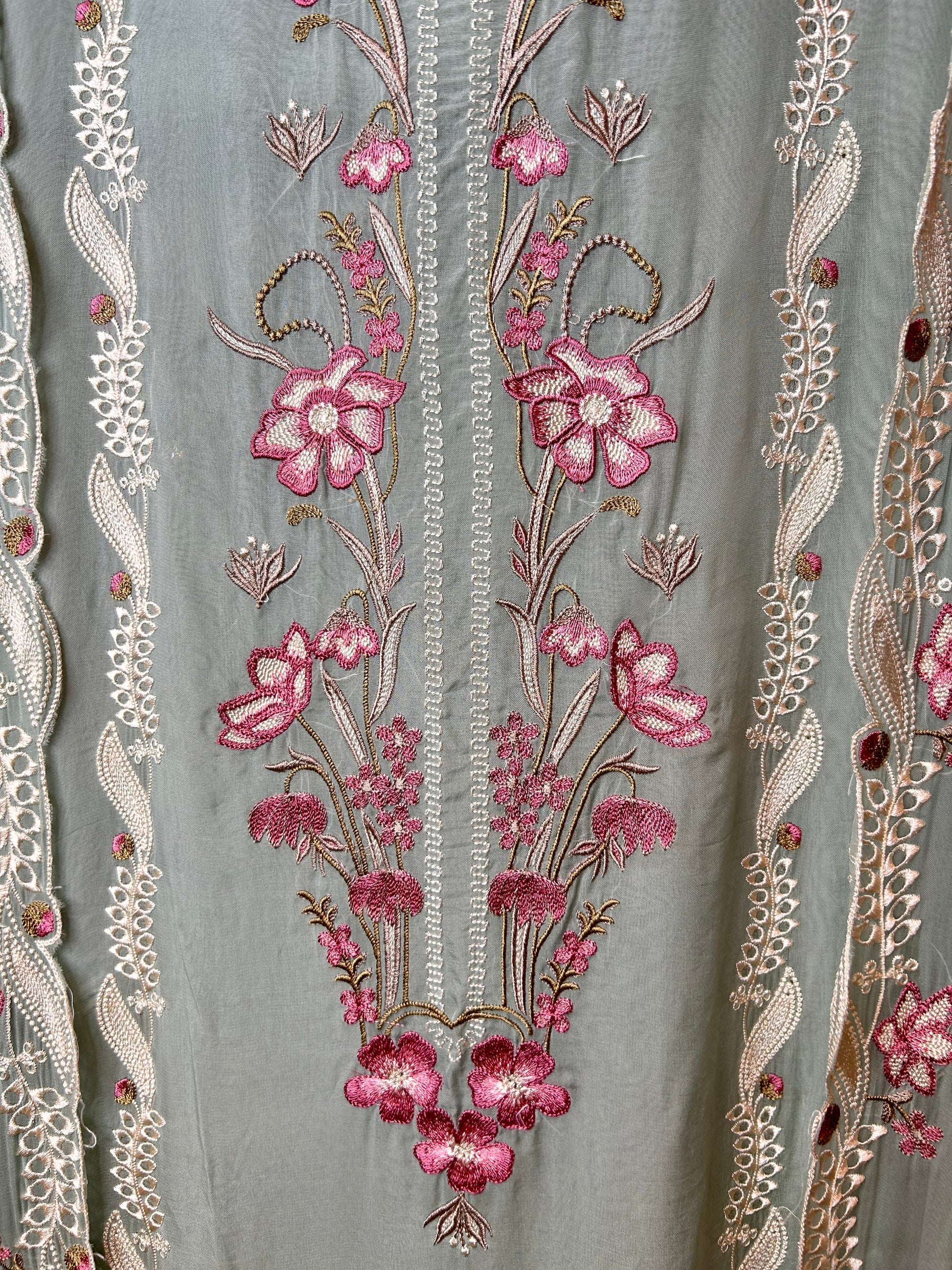 • Pure Organza Shirt with Threaded Embroidery (2.5 mtr)