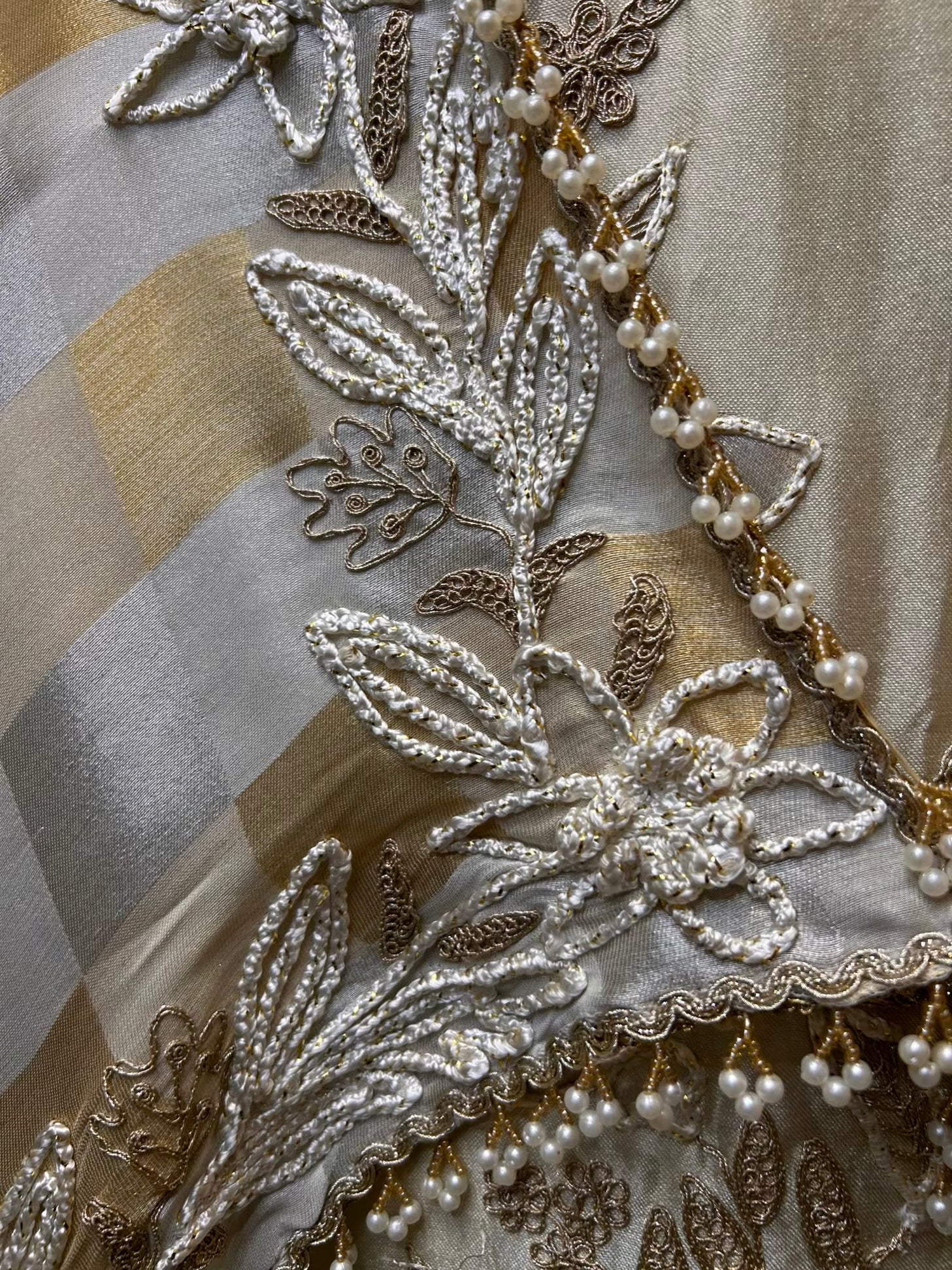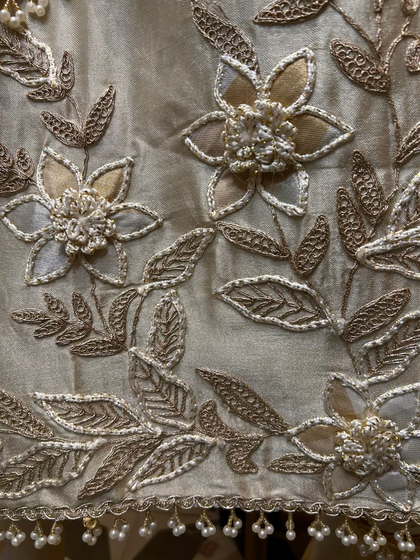 - Organza Banarasi Dupatta (2.25 mtrs) – Finished with Dori and bead work on all sides.