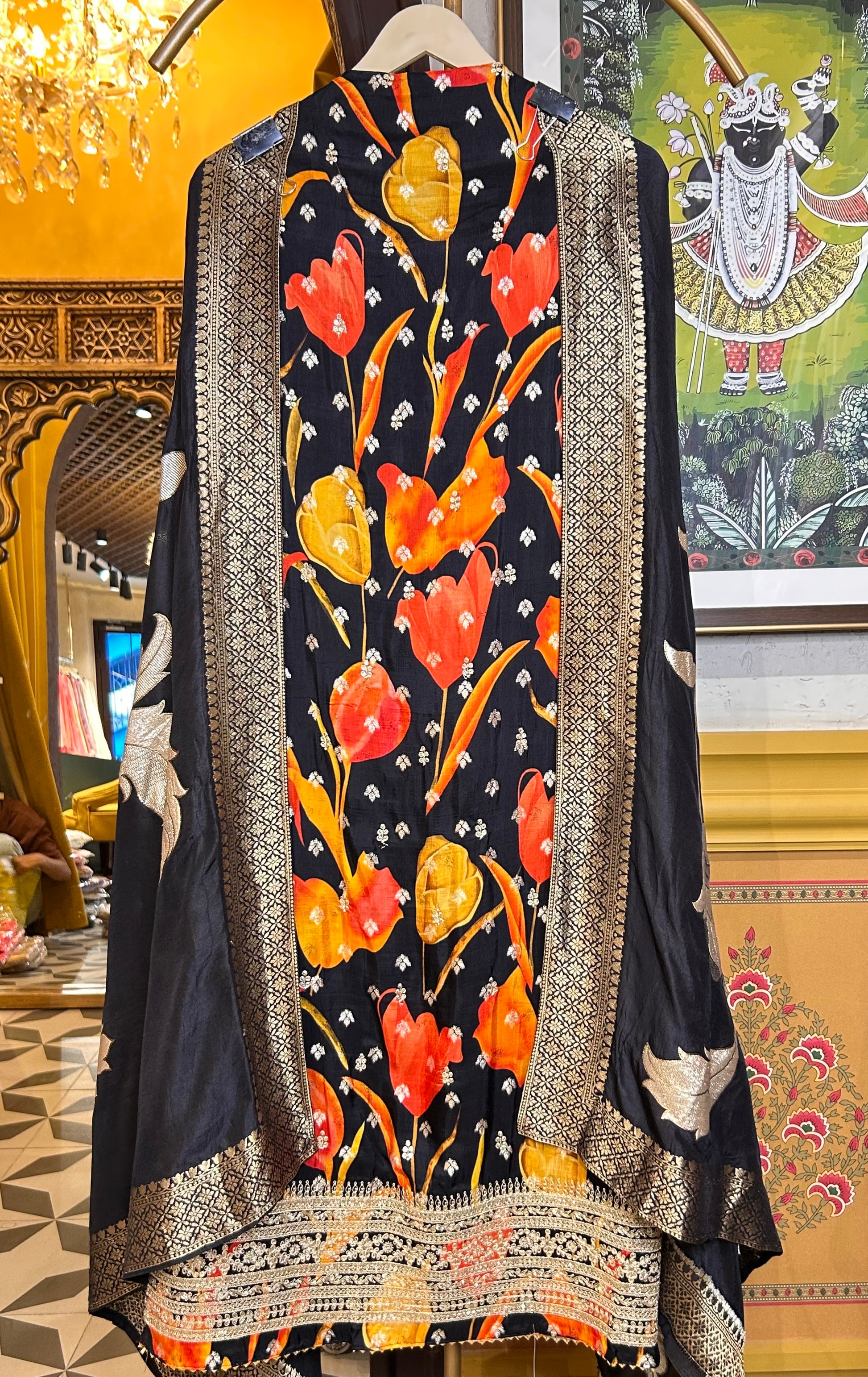 • Silk Banarasi Digital Printed Shirt with Gera, Cut Dana & Zari Work – 2.5 meters