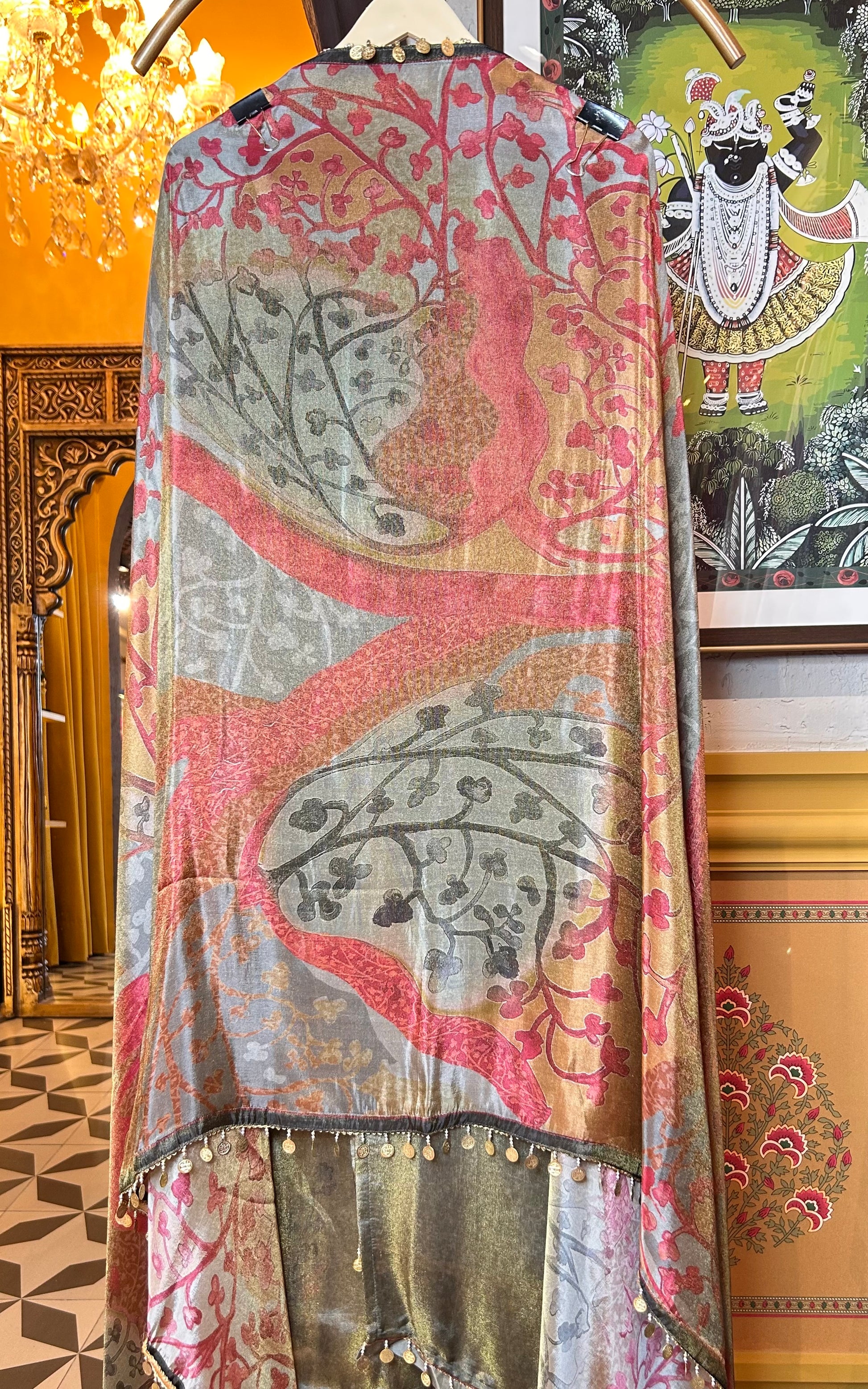 Digitally printed with a soft shimmer finish, this dupatta brings contemporary artistry and movement to a traditional silhouette.