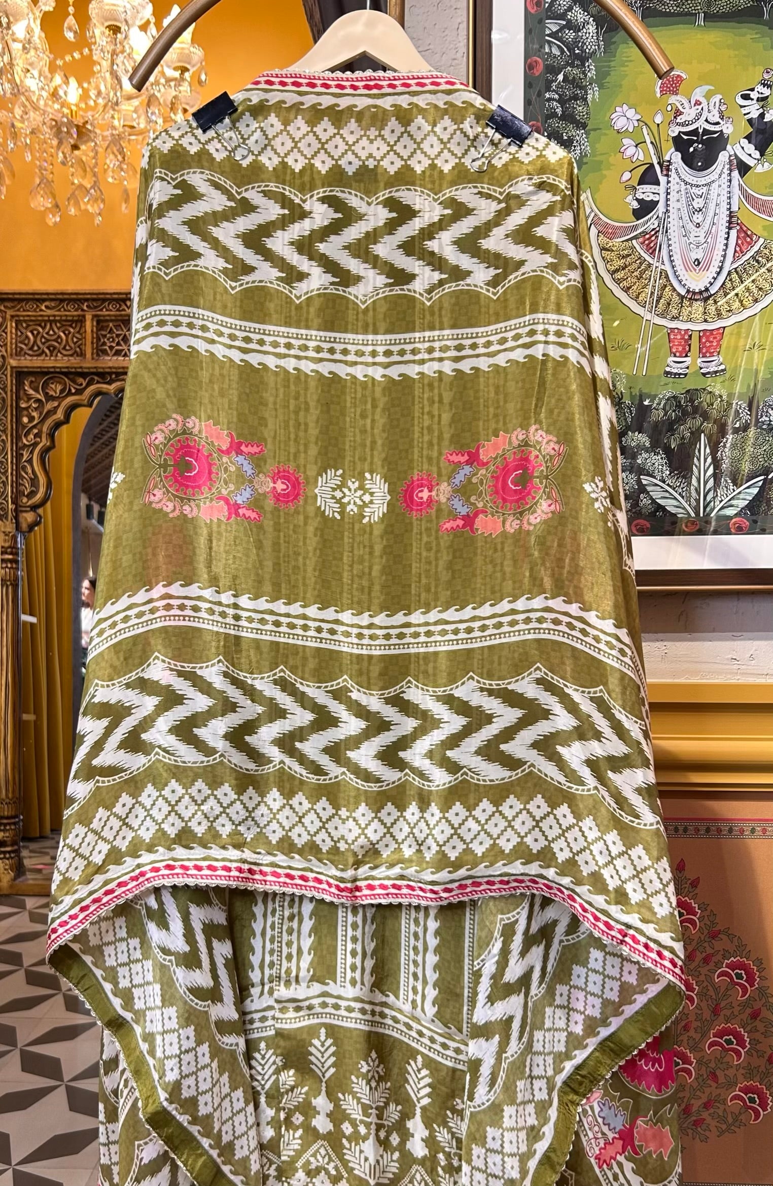 A celebration of modern artistry with a touch of tradition, this Digital Printed Organza Suit Set brings color and craftsmanship together in perfect harmony. The digitally printed organza shirt, highlighted with delicate handwork, strikes the right balance between elegance and contemporary charm. Paired with a flowing printed dupatta and a smooth silk bottom, this ensemble is versatile, sophisticated, and effortlessly stylish.