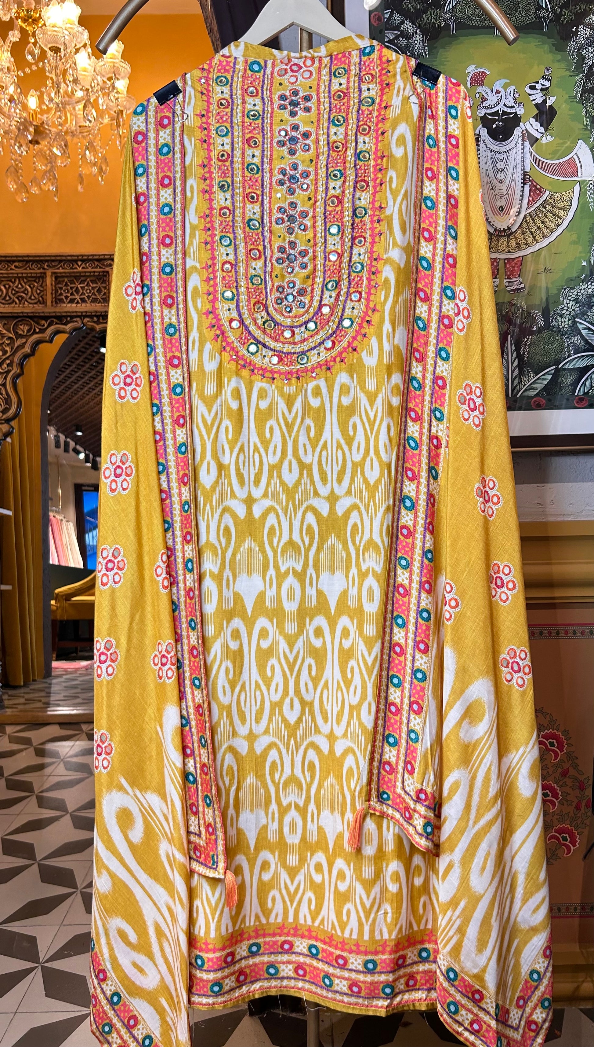 Breathable and feather-light, the dupatta mirrors the shirt’s print, weaving continuity and culture into every drape.