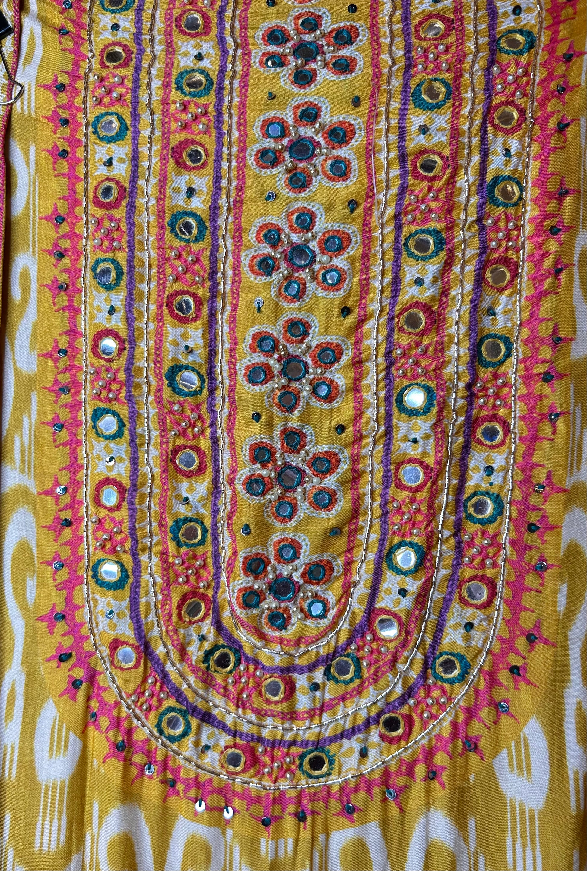 • Muslin Ikkat Printed Shirt with Hand-Embroidered Neckline (2.5 mtr)