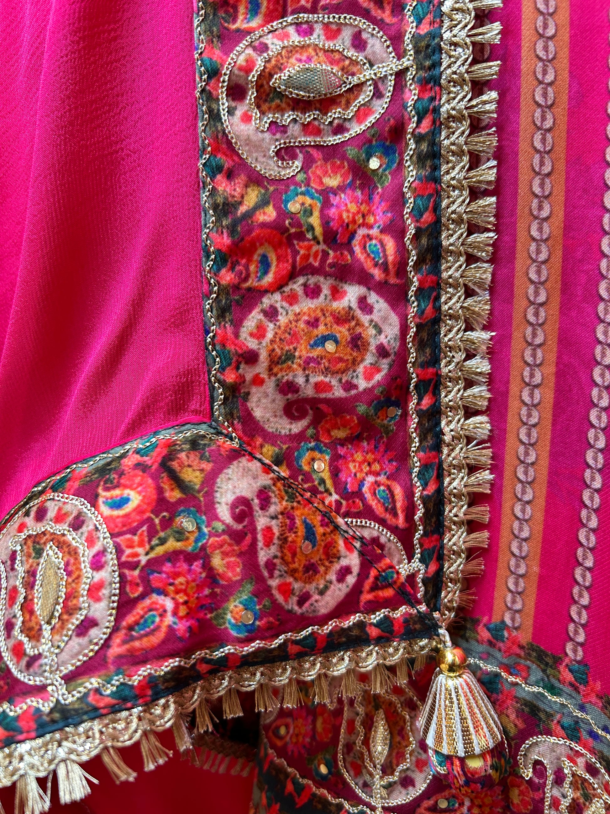 Finished with four-side lace detailing, the dupatta drapes effortlessly, adding a luxurious touch to your look.