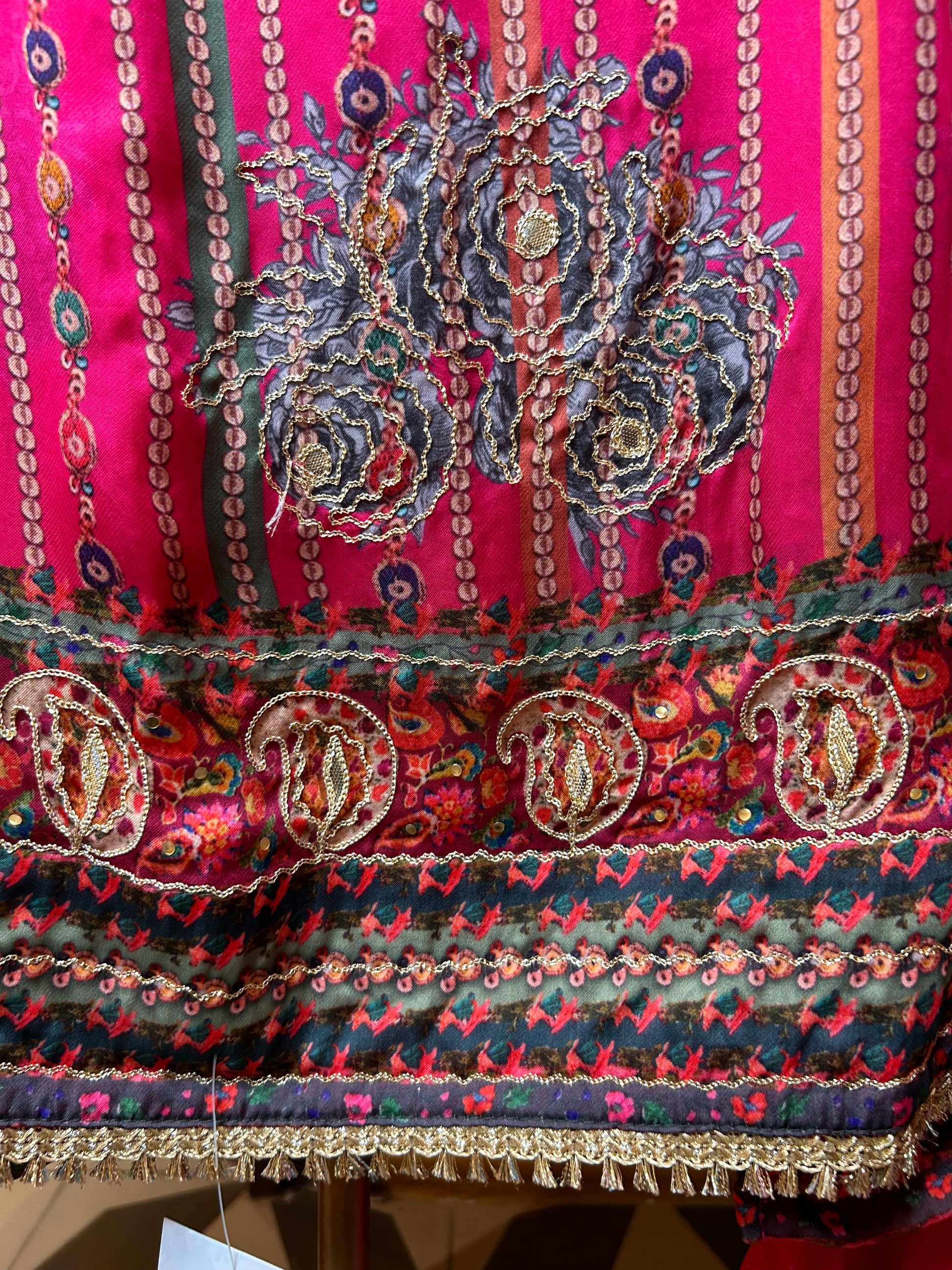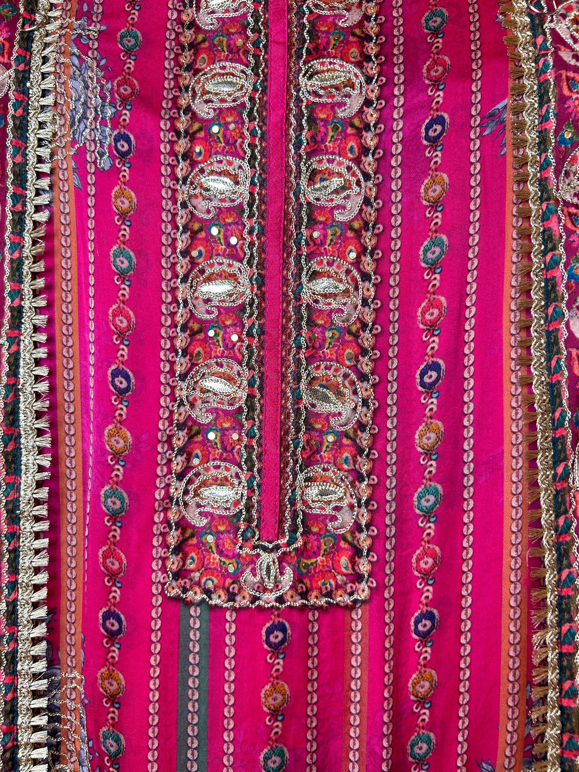 Adorned with delicate zari accents, this printed shirt reflects light with grace and offers a refined, festive appeal.