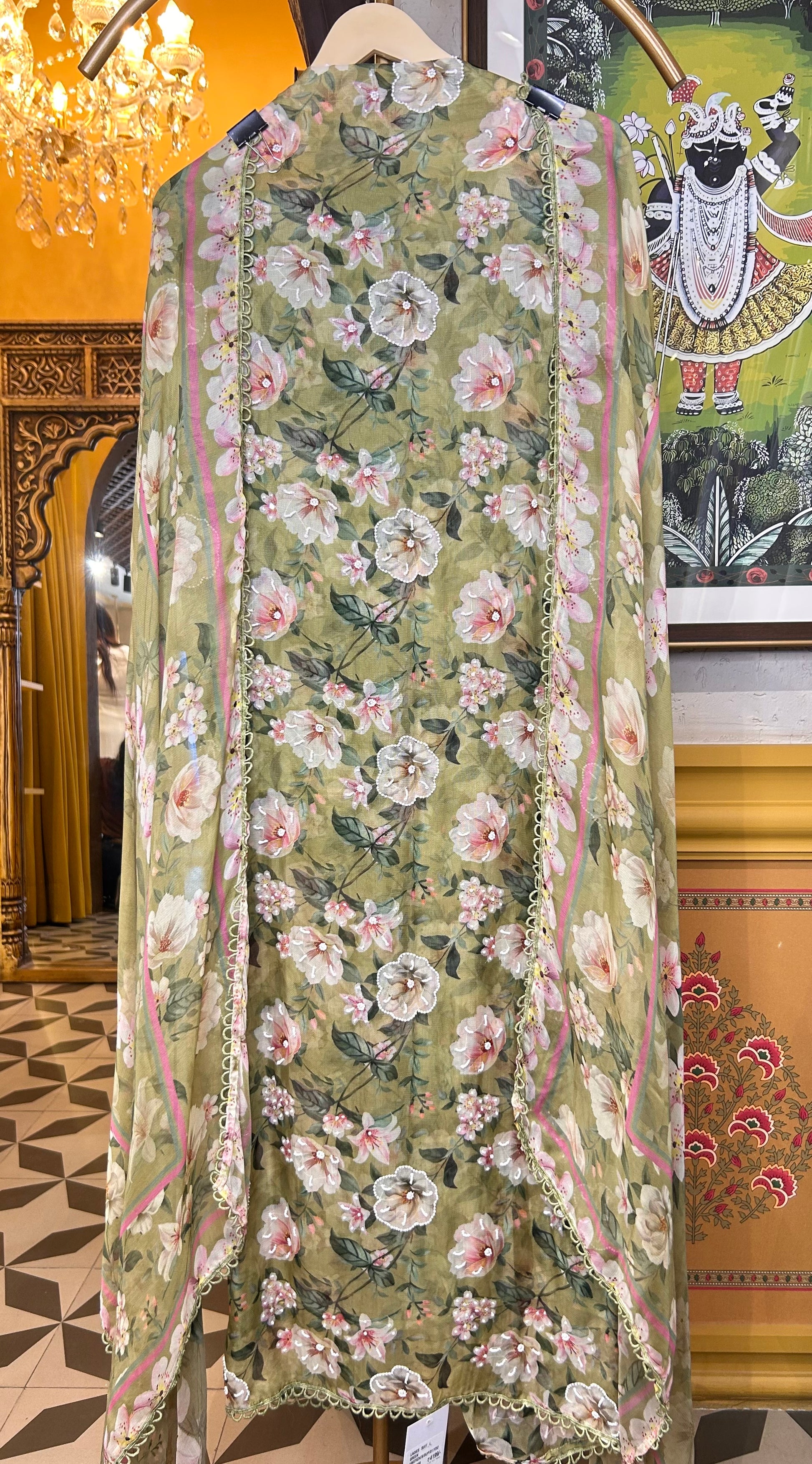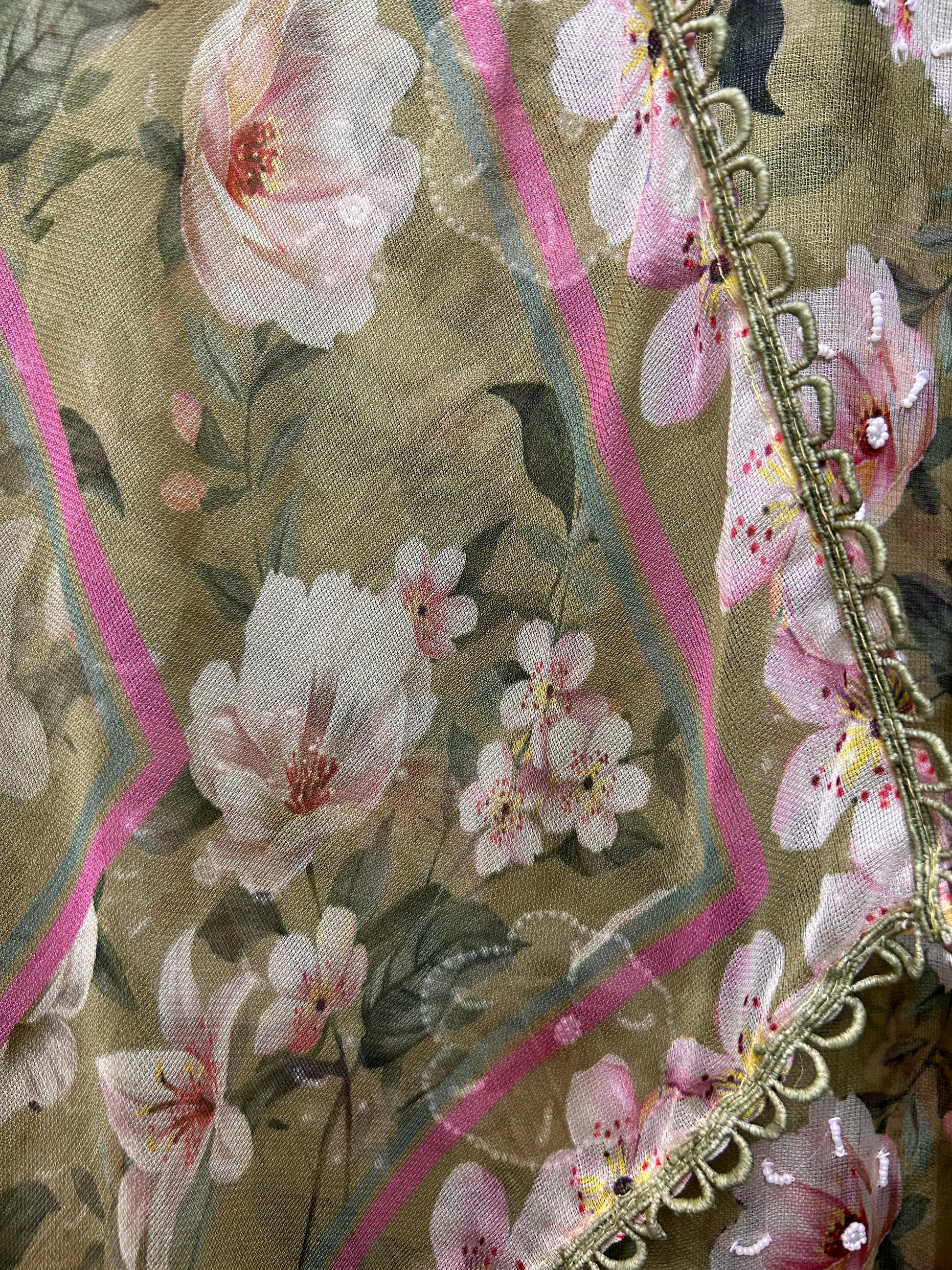 • Organza Digital Printed Dupatta with Four-Sided Lace – 2.25 meters