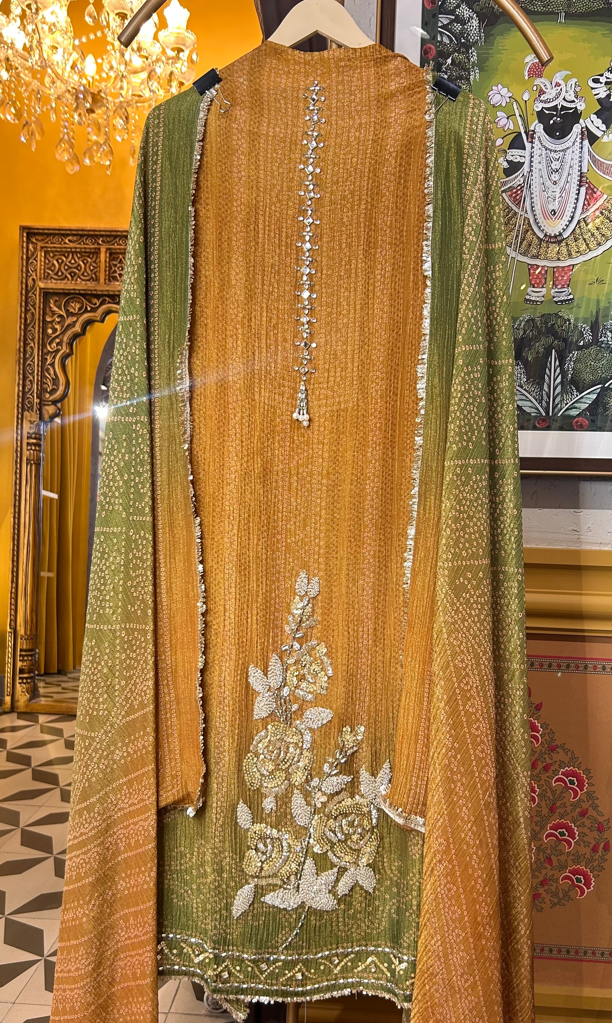 ✨ Zareen Gera – An ensemble where delicate handwork meets the subtle sheen of crush tissue, creating timeless elegance.