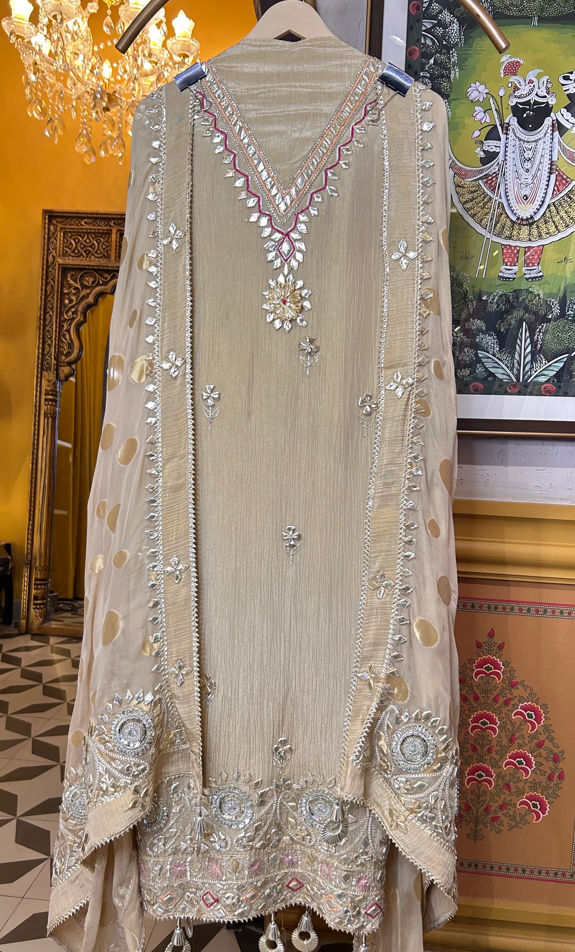 • Crushed Tissue Shirt with Gota Neckline, Ghera Cut-Dana & Sequins Work – 2.5 meters