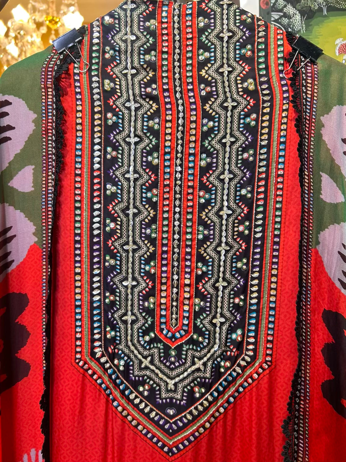 • Digital Printed Silk Organza Suit (2.5 mtrs) – Enhanced with intricate handwork for a polished, luminous finish.
