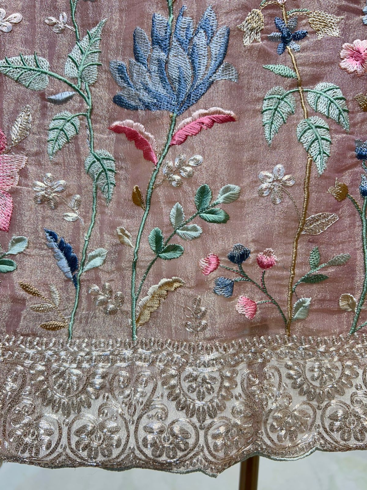 • Crush Tissue Dupatta (2.25 mtrs) – Coordinated with thread and zari detailing, light and gracefully draped.