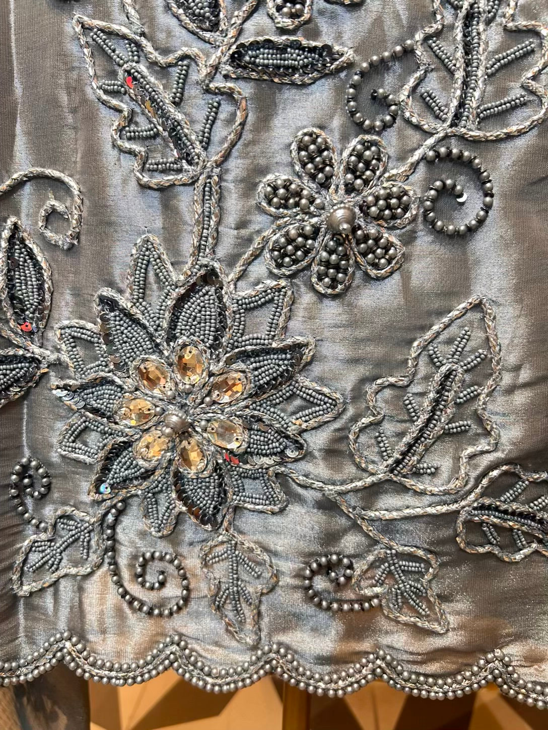 An ode to timeless elegance — the Zarmeen Organza Suit brings together the delicate charm of hand embroidery and the regal allure of Banarasi weaving. The shimmer organza suit, adorned with intricate handwork, glows with subtle sophistication and artisanal detail. Paired with a rich Banarasi shimmer organza dupatta and a smooth silk bottom, this ensemble embodies classic grace and festive opulence.