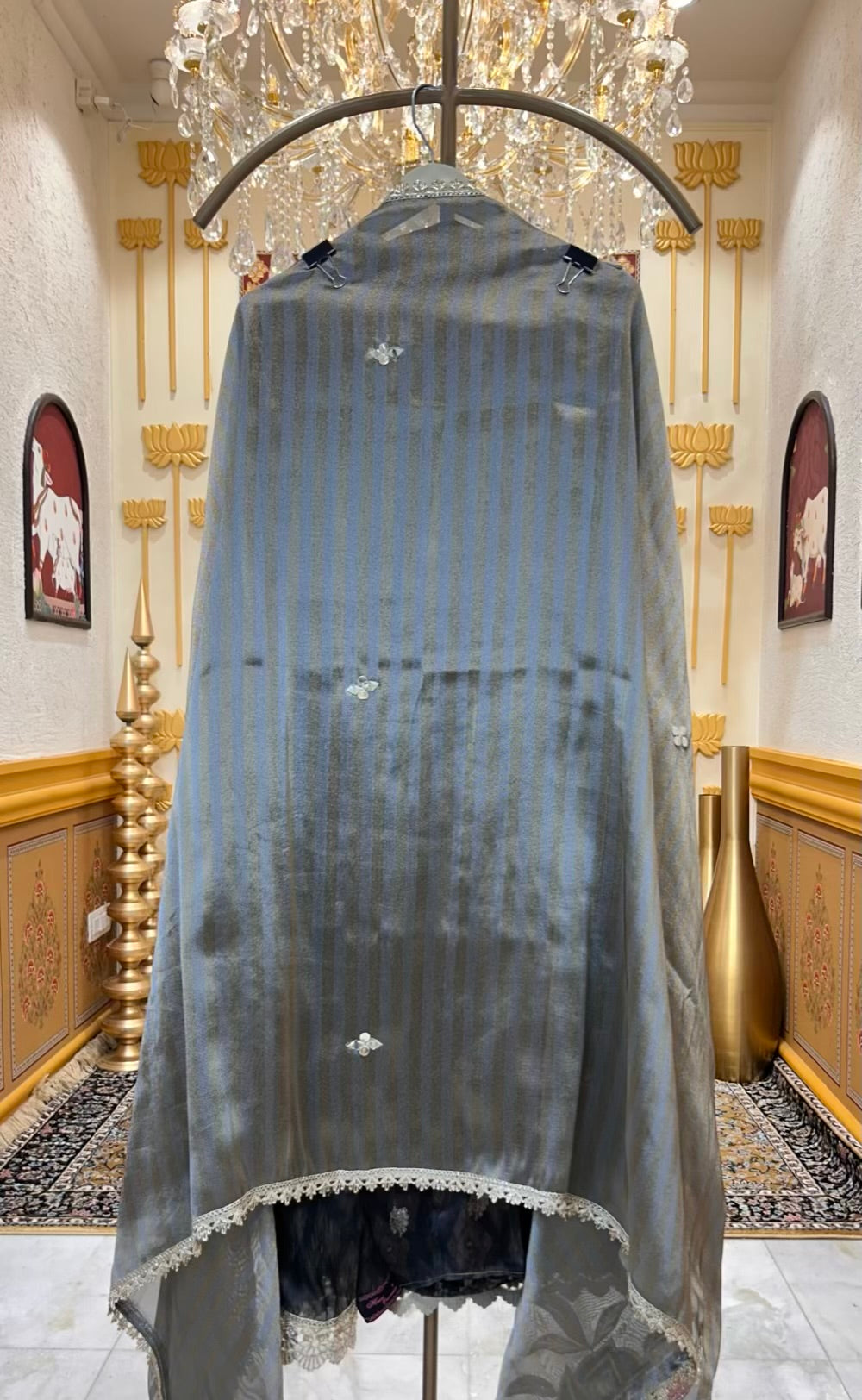• Shimmer Organza Dupatta (2.25 mtrs) – Finished with a graceful four-side lace, adding movement, sheen, and sophistication.